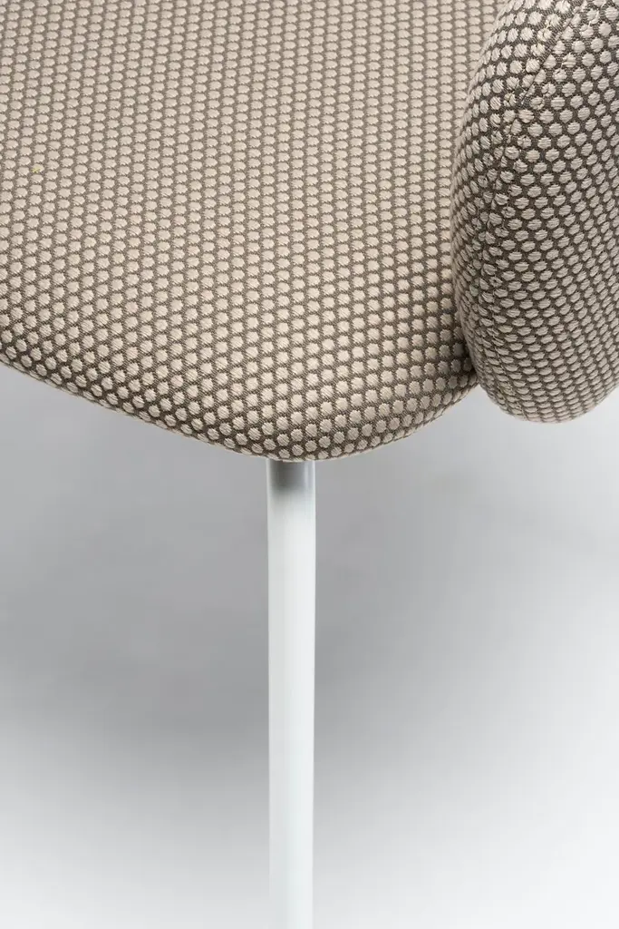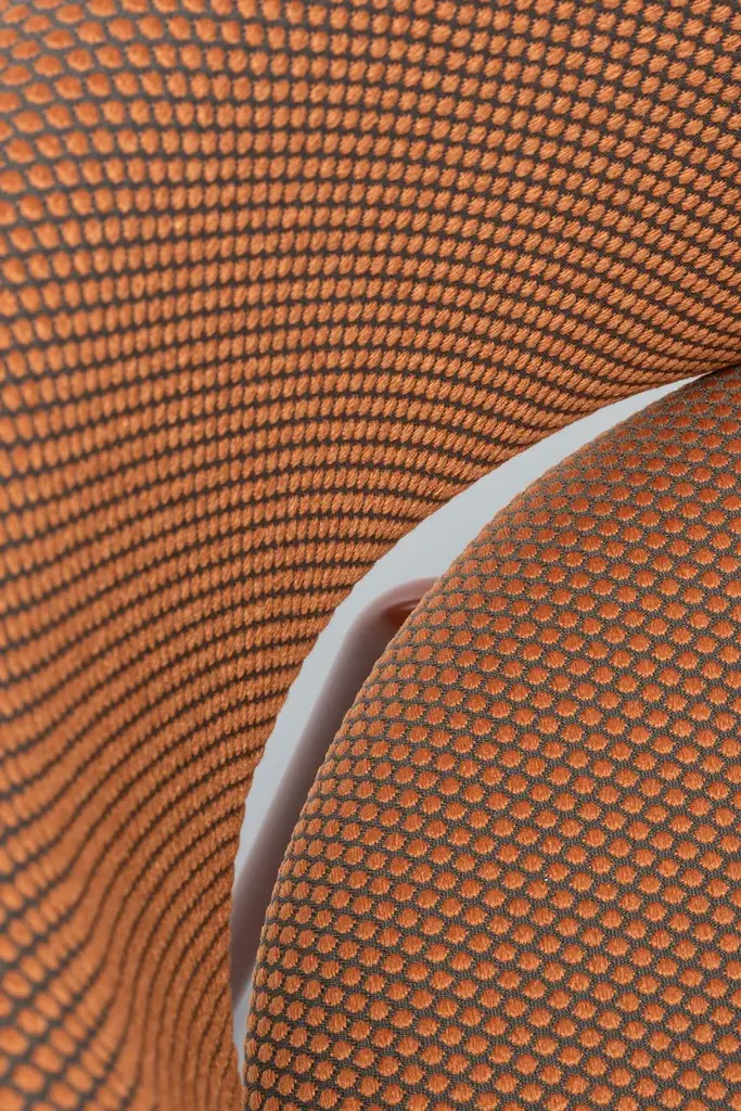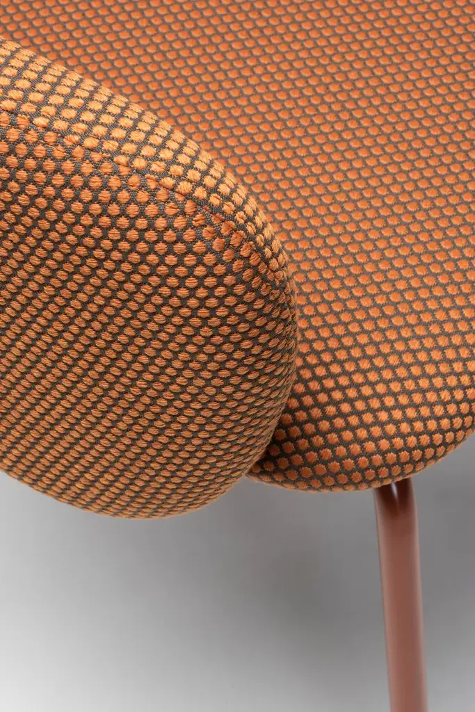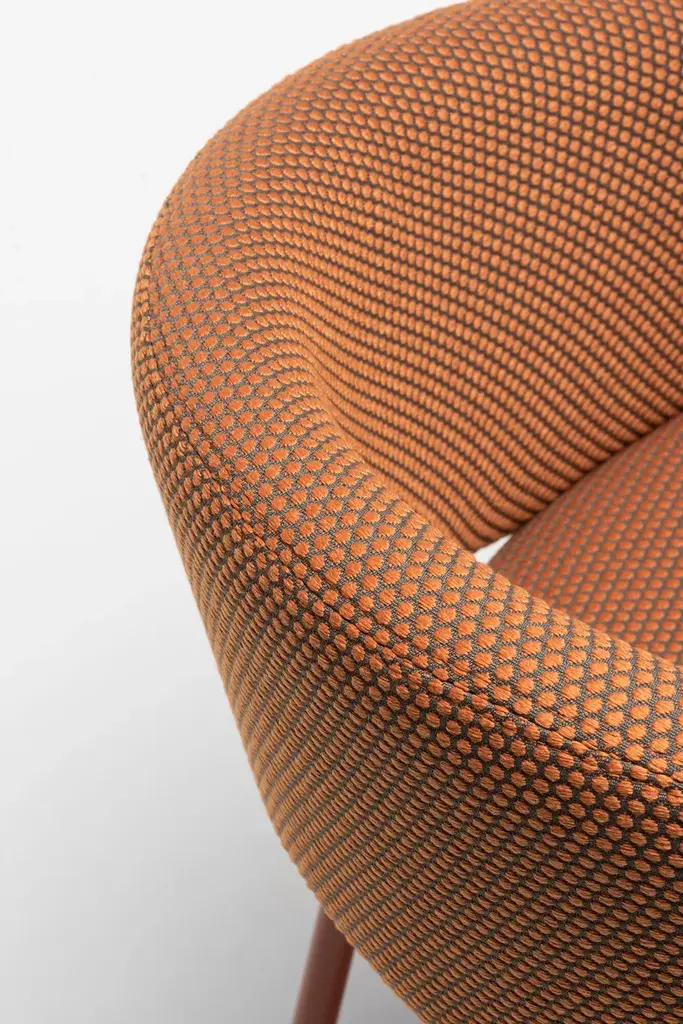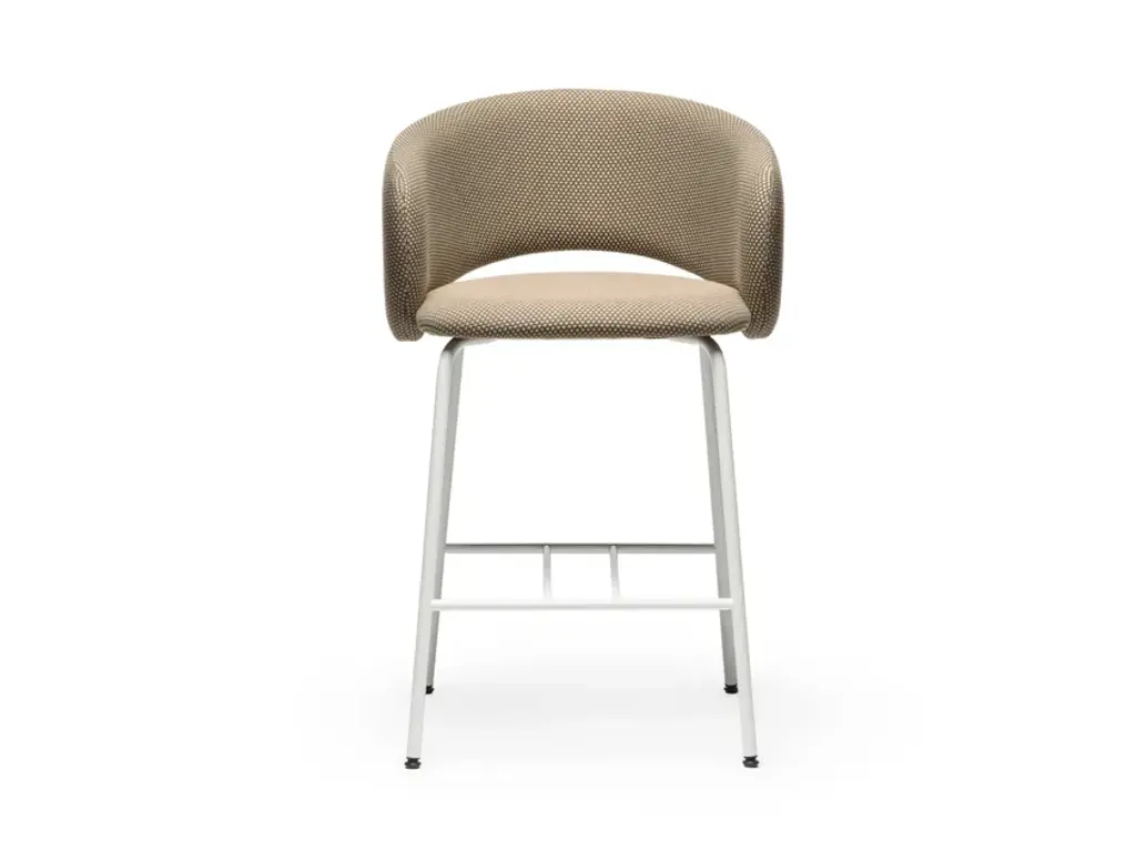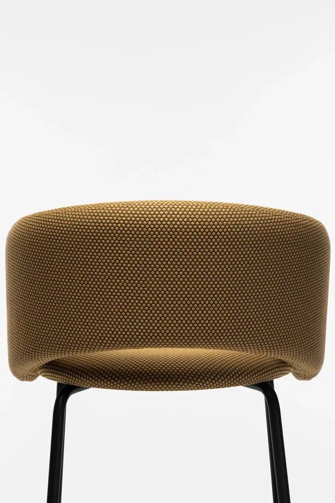 Bel M-SG-65 is a stool with base in black, white, or terracotta powder-coated metal. Upholstered seat in fabric.
