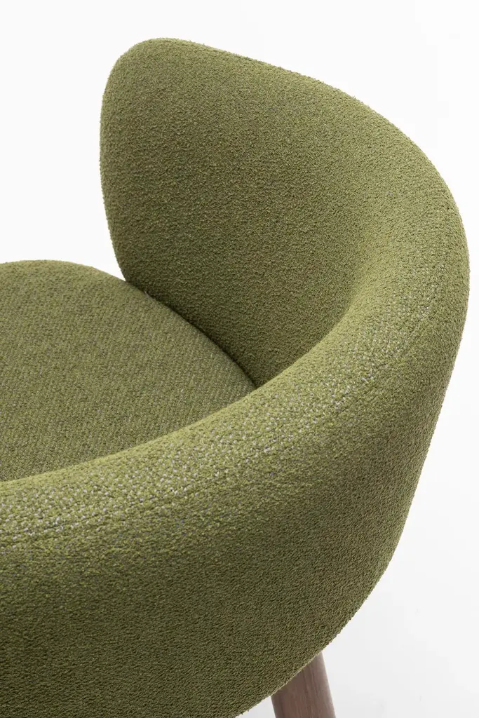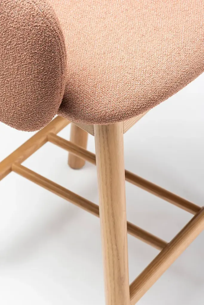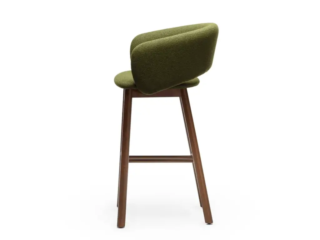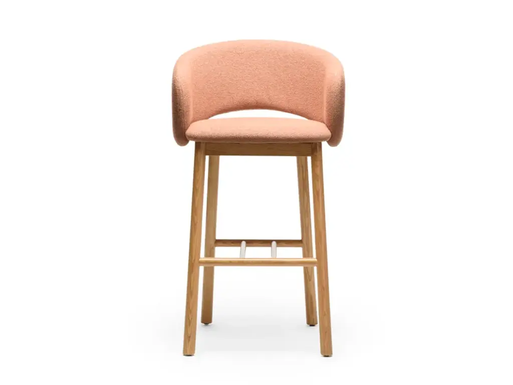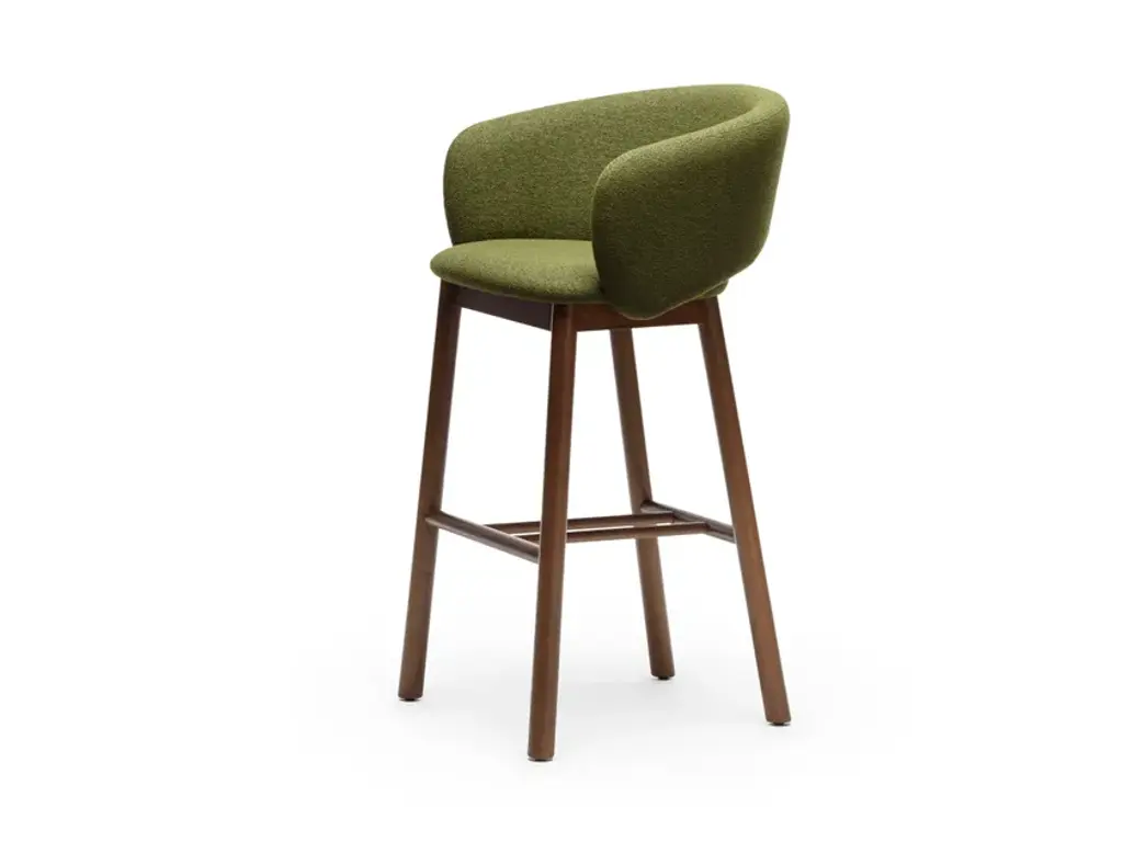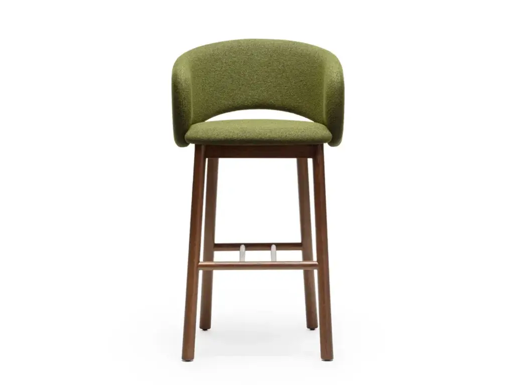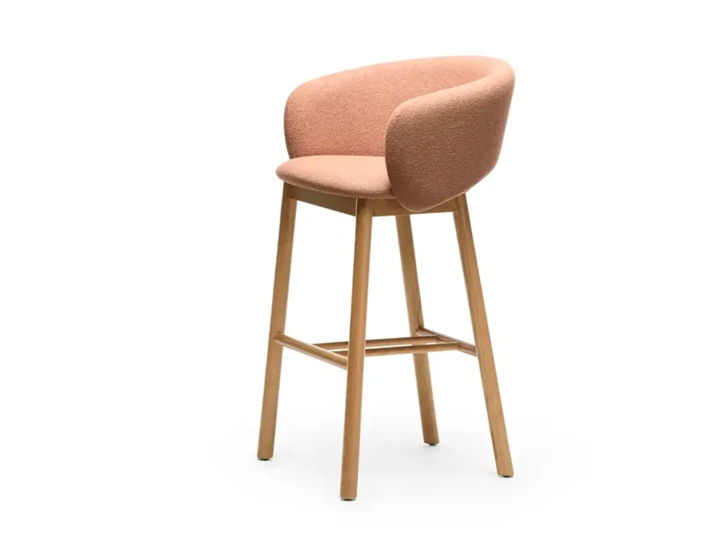BEL SG-75 is an high stool with base in natural polished ash wood, oak, or walnut. Upholstered seat in fabric.