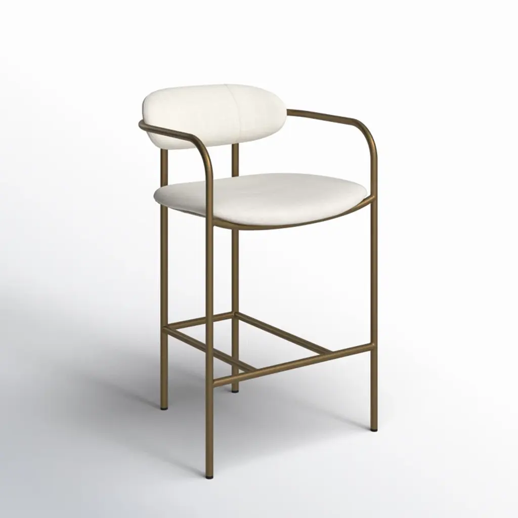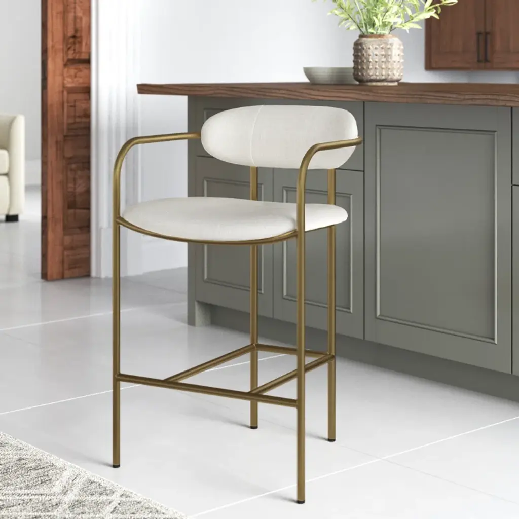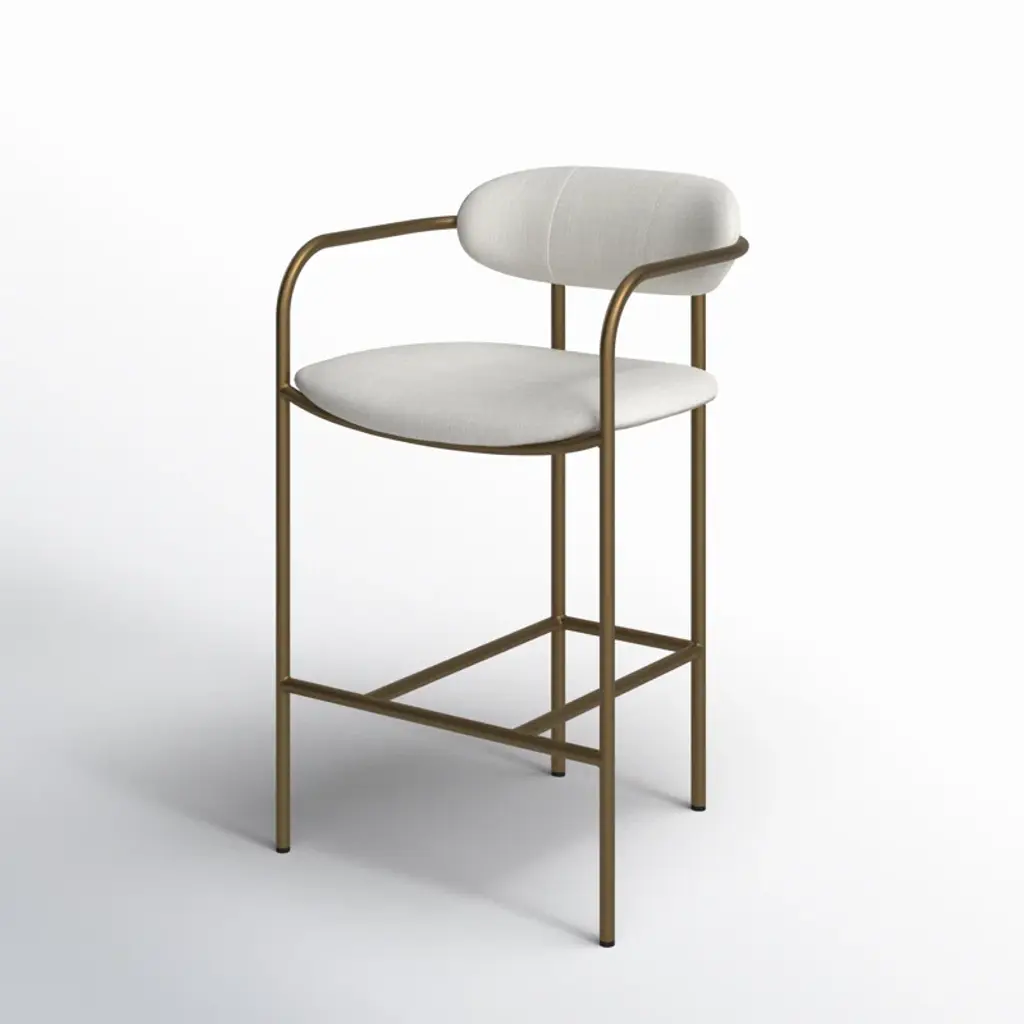 Belarus is a simple yet stylish counter stool featuring a gray fabric-covered seat and back perched atop a sleek, four-legged metal frame.