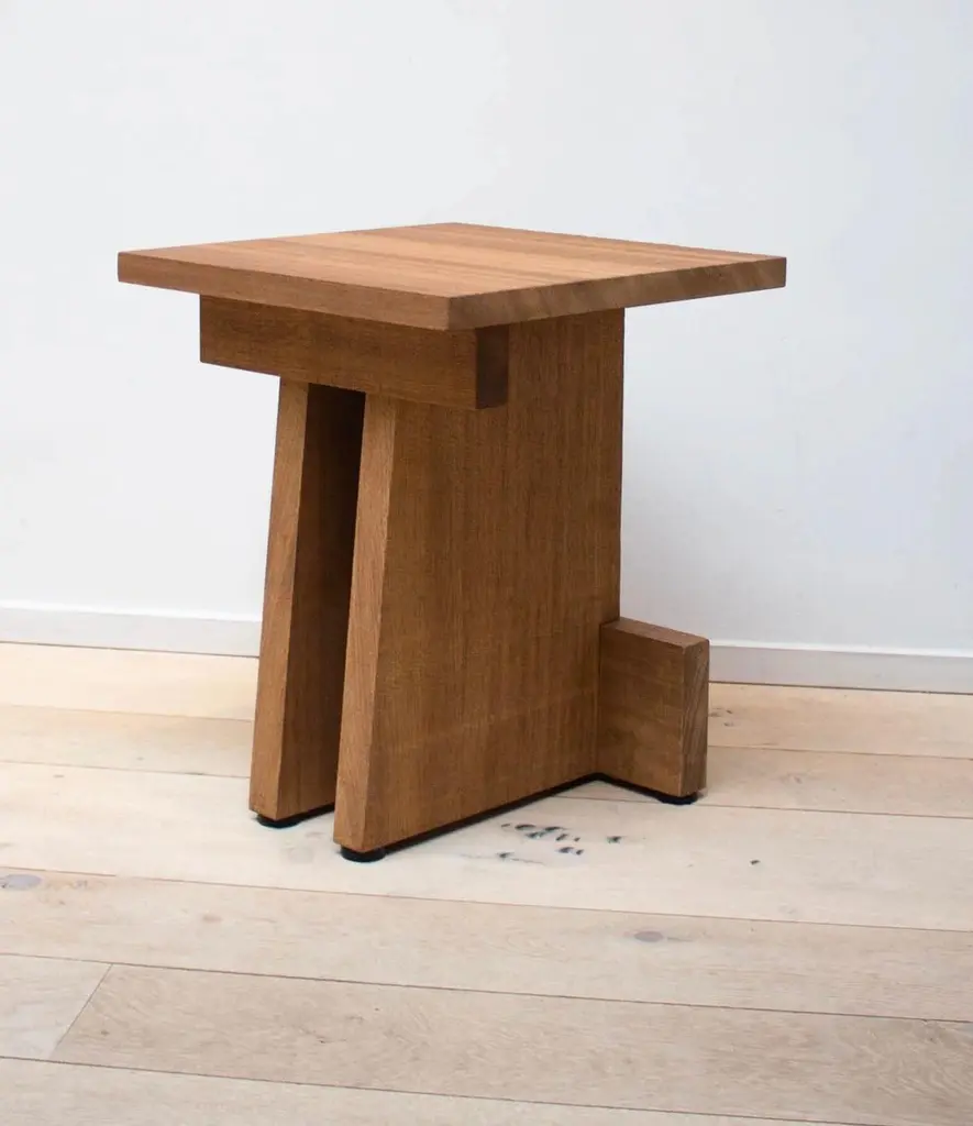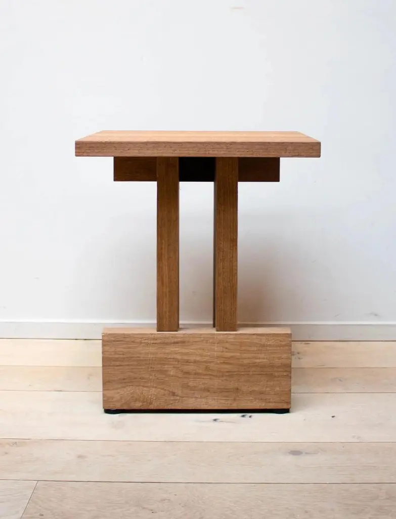 Belgian Brutalist Stool/nightstand In Solid Ayous Wood