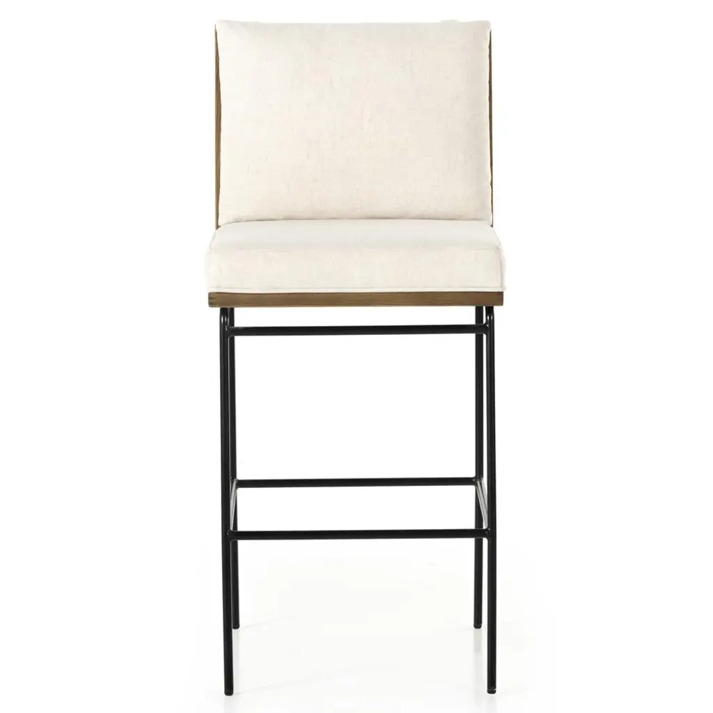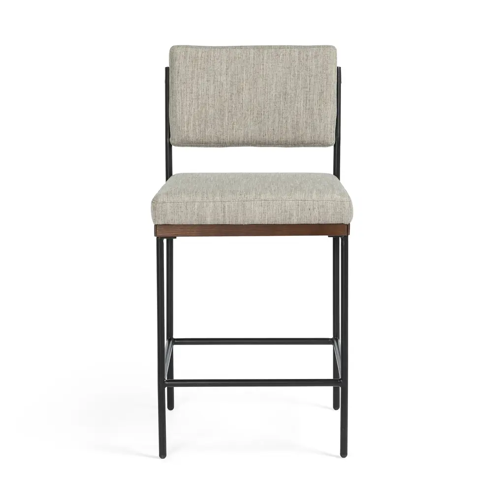 Add timeless style to your home bar or kitchen countertop with the Benton Stool from Four Hands. Its slim, iron frame supports soft padding and a luxuriously tailored fabric, underscored by a solid oak decking for a sophisticated material mix. You'll enjoy low-maintenance comfort for years to come, thanks to the performance fabric's resistance to spills, stains, high traffic, and wear. Highlights