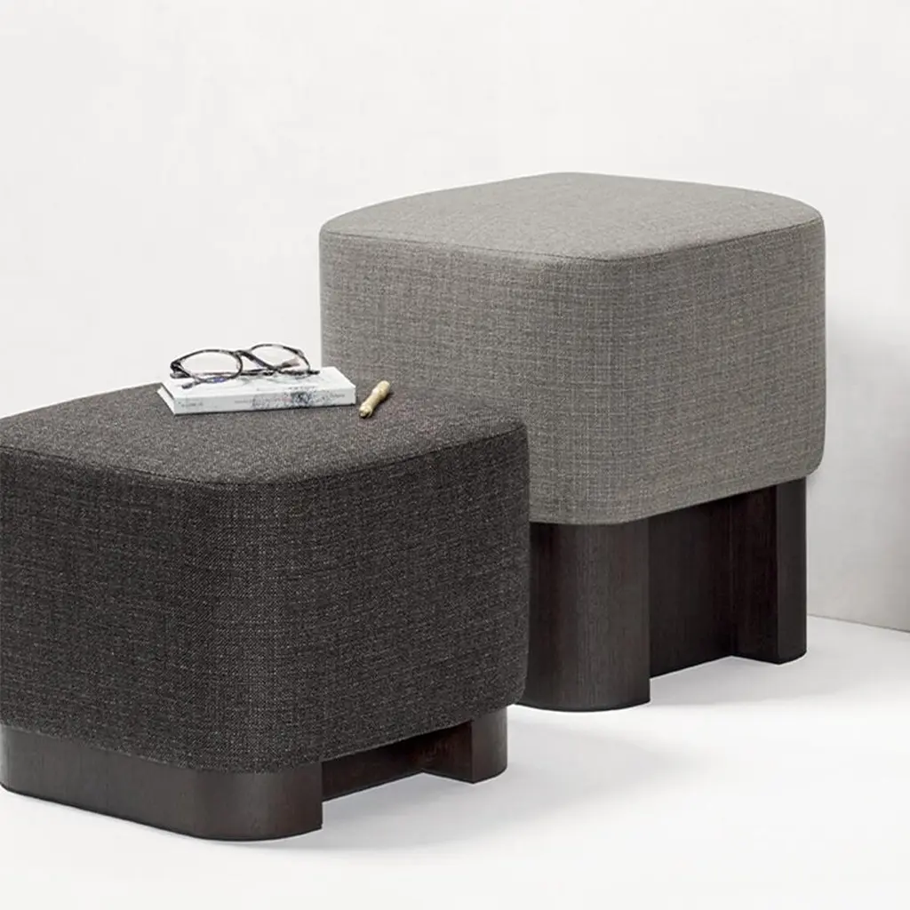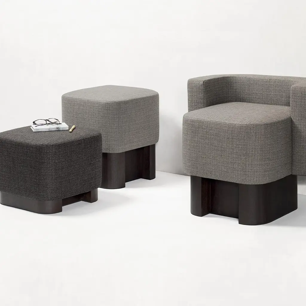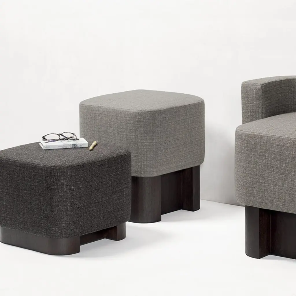 Stool Bergam with solid walnut base in blackened finish. Upholstered and covered with cashmere and wool fabric.