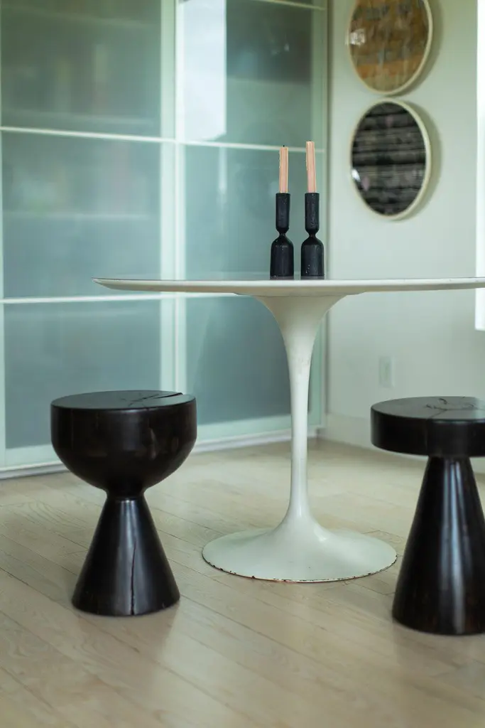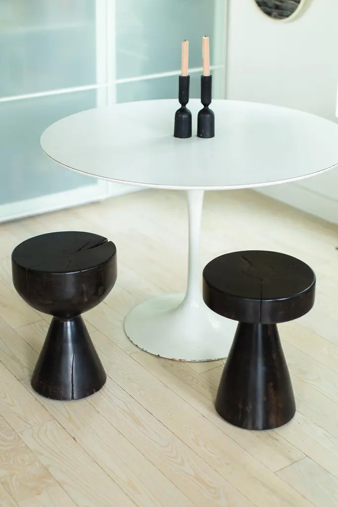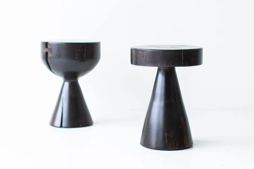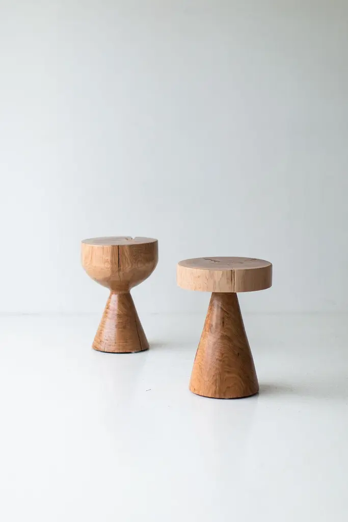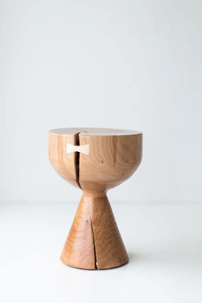 Bertu Stools, Boca Uno Dining Stool, Modern Please scroll down to read IMPORTANT INSTRUCTIONS ABOUT OUR STUMPS before purchase!Why buy BERTU HOME stumps?KILN DRIEDOur stumps all go through a drying process in our kiln, sometimes for up to a month. We are meticulous with bringing each and every log to a specific moisture level. This process helps with major cracking, long-term moisture issues, and bugs.ECO FRIENDLYIn an effort to replenish the trees we use, we plant 50+ trees a year. In addition, we practice salvage logging. Where do we source these? Some of the trees fall naturally. Some have damage from severe wind, lightning, flood, disease, or other natural disturbance so they need to be cut and removed before they fall. Others are fresh cut because people want them off their land. Salvage logging may reduce erosion, reduce intensity of future wildfires, and slow buildup of pest insects.FAMILY OWNEDThese are made from our family to yours. Quality is of utmost importance, and we hand cut, de-bark, sand, and finish every piece with care. See how we do it here.COMMERCIAL GRADEThese stumps are meant to be loved and USED. Each is finished with a durable commercial-grade finish. This finish is tough enough for spills, kids, and holds up in hotel and hospitality settings.PLEASE NOTE : These stumps will age naturally, and even more so being outdoors and exposed to the elements. Each is a solid log with its own unique character so we can not guarantee the finish won't fade or discolor as this varies per climate and log. This Modern Dining Stool - The Boca Uno is made in the heart of Ohio with locally sourced wood. The stump can be used for a side table, a dining height stool, or grouped together for a larger architectural table. Each stool is made from a solid trunk of maple and is beautifully hand sculpted into our Boca shape. Choose from a thicker seat, thinner seat, or a mixture of both! Each piece is hand sawed, sanded, and sprayed with a commercial grade "Aged" or natural finish. Other finish colors available! Every part of the process is handled with care to honor the unique markings of each tree. PLEASE NOTE: THESE ARE PRONE TO CRACKING. WE LOVE THE LOOK BUT THESE DEFINITELY ARE NOT FOR THE PERSON WHO WANTS A PERFECT PIECE.... LOTS OF CHARACTER. Cracks can even be as big as 1/2" wide due to proper drying in our kiln. The idea is that most of the cracking happens before it is sprayed, shipped, and in its new home. These are all slightly different in character and they may vary in size - No two pieces are exactly alike. Our team and clients absolutely love these."I love natural elements. I'm inspired by them and I love being surrounded by them. I also love modern furniture and accessories. When thinking of new products a few years back, I wanted to do a modern twist on something considered rustic and "country".Thus the whitewash stump table was born! It's important to our family to not only design and manufacture beautiful things, but to provide the best quality and experience. There is a lot of love that goes into each stump, as we hand pick and finish each one per order. Add a little piece of nature to your home in a modern way!" -- Gretta Jones // Bertu HomeIMPORTANT INFORMATION ABOUT OUR STUMPS...1. Please unpack your stump immediately and leave it out of any packaging. These are real pieces of wood and need to breathe!2. For OUTDOOR stumps : Though these are kiln dried and the wood can be used outdoors, sometimes when they arrive in different climates, humidity levels adjust and can affect the finish on top. We see this more often in direct sunlight. We do our very best and continue to make sure there are no issues, but we can not control climate. Solid wood and the elements are unpredictable and we will not be liable. The great thing about these logs is you can always sand them down and refinish.3. Wood naturally moves. These are solid pieces and for that reason, they are prone to cracking. You may get more cracks or bigger cracks in the first few weeks as the wood acclimates to its new home and climate.4. These stump tables have nylon glides (feet) underneath not only to make them easier to move around (they are heavy!), but also so there is nice air flow to the wood. The air flow is most effective on hard flooring. If you put these on rugs or carpeting, we suggest checking on the underside of your stump periodically to prevent any issues.5. We are not liable for any damages to property or people. If you have any concerns or questions you need to discuss, please write or call. We are always available, honest, and transparent about our products. Thank you and I hope you love these!+ + + + + + + + + + + + + + + + + + + + + + +specsPeriod/Model: New; Organic ModernSpecs: Maple, Aged Commercial Grade FinishCustomizable: Yes! It's what we do :)dimensionsH: 18"W: 12.5"SKU: Bertu Stools, Boca Uno Dining Stool, Modern