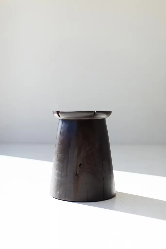 Bertu wood stool, "Brinx" wood stool, MaplePlease scroll down to read important instructions about our stumps before purchase!Why buy BERTU HOME stumps?KILN DRIEDOur stumps all go through a drying process in our kiln, sometimes for up to a month. We are meticulous with bringing each and every log to a specific moisture level. This process helps with major cracking, long-term moisture issues, and bugs.ECO FRIENDLYIn an effort to replenish the trees we use, we plant 50+ trees a year. In addition, we practice salvage logging. Where do we source these? Some of the trees fall naturally. Some have damage from severe wind, lightning, flood, disease, or other natural disturbance so they need to be cut and removed before they fall. Others are fresh cut because people want them off their land. Salvage logging may reduce erosion, reduce intensity of future wildfires, and slow buildup of pest insects.FAMILY OWNEDThese are made from our family to yours. Quality is of utmost importance, and we hand cut, de-bark, sand, and finish every piece with care. See how we do it here.COMMERCIAL GRADEThese stumps are meant to be loved and USED. Each is finished with a durable commercial-grade finish. This finish is tough enough for spills, kids, and holds up in hotel and hospitality settings.PLEASE NOTE : These stumps will age naturally, and even more so being outdoors and exposed to the elements. Each is a solid log with its own unique character so we can not guarantee the finish won't fade or discolor as this varies per climate and log. This Brinx Solid Wood Stool is made in the heart of Ohio with locally sourced wood. The stump can be used for a side table, a dining height stool, or grouped together for a larger architectural table. Each stool is made from a solid trunk of maple and is beautifully hand sculpted. Each piece is hand sawed, sanded, and sprayed with a commercial grade "Aged" finish. Other finish colors available! Every part of the process is handled with care to honor the unique markings of each tree. PLEASE NOTE: THESE ARE PRONE TO CRACKING. WE LOVE THE LOOK BUT THESE DEFINITELY ARE NOT FOR THE PERSON WHO WANTS A PERFECT PIECE.... LOTS OF CHARACTER. Cracks can even be as big as 1/2" wide due to proper drying in our kiln. The idea is that most of the cracking happens before it is sprayed, shipped, and in its new home. These are all slightly different in character and they may vary in size - No two pieces are exactly alike. Our team and clients absolutely love these."I love natural elements. I'm inspired by them and I love being surrounded by them. I also love modern furniture and accessories. When thinking of new products a few years back, I wanted to do a modern twist on something considered rustic and "country".Thus the whitewash stump table was born! It's important to our family to not only design and manufacture beautiful things, but to provide the best quality and experience. There is a lot of love that goes into each stump, as we hand pick and finish each one per order. Add a little piece of nature to your home in a modern way!" -- Gretta Jones // Bertu HomeIMPORTANT INFORMATION ABOUT OUR STUMPS...1. Please unpack your stump immediately and leave it out of any packaging. These are real pieces of wood and need to breathe!2. For OUTDOOR stumps : Though these are kiln dried and the wood can be used outdoors, sometimes when they arrive in different climates, humidity levels adjust and can affect the finish on top. We see this more often in direct sunlight. We do our very best and continue to make sure there are no issues, but we can not control climate. Solid wood and the elements are unpredictable and we will not be liable. The great thing about these logs is you can always sand them down and refinish.3. Wood naturally moves. These are solid pieces and for that reason, they are prone to cracking. You may get more cracks or bigger cracks in the first few weeks as the wood acclimates to its new home and climate.4. These stump tables have nylon glides (feet) underneath not only to make them easier to move around (they are heavy!), but also so there is nice air flow to the wood. The air flow is most effective on hard flooring. If you put these on rugs or carpeting, we suggest checking on the underside of your stump periodically to prevent any issues.5. We are not liable for any damages to property or people. If you have any concerns or questions you need to discuss, please write or call. We are always available, honest, and transparent about our products. Thank you and I hope you love these!+ + + + + + + + + + + + + + + + + + + + + + +specsPeriod/Model: New; Organic ModernSpecs: Maple, Aged Commercial Grade FinishCustomizable: Yes! It's what we do :)dimensionsH: 18"W: 14.5"Seat W: 12.52