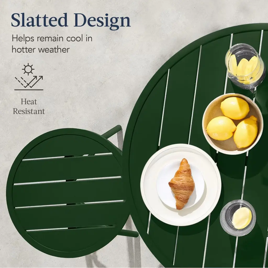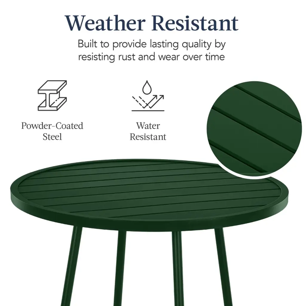 Best Choice Products 3-piece Steel Patio Bar Height Round Bistro Set W/ Backless Stools, Slatted Design - Dark Green