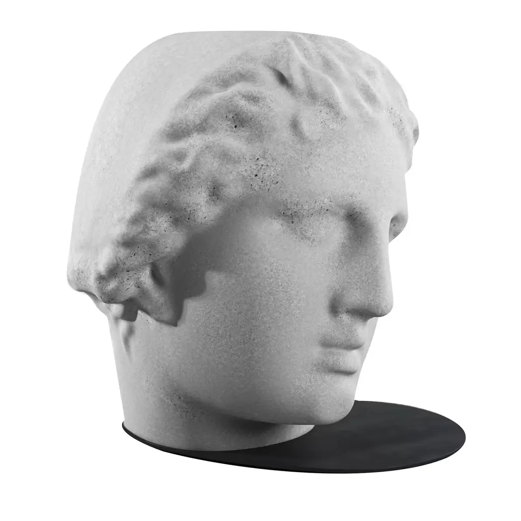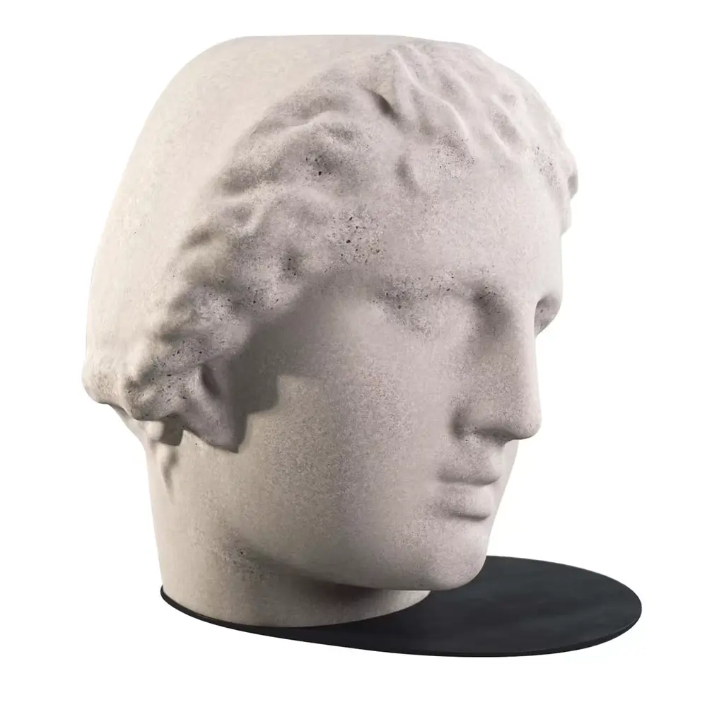 This anthropomorphic stool is in the shape of a mysterious female bust, whose classical form softens the industrial edge of its concrete material. It can be mixed and matched with other items in the line, which was designed by Marialaura Rossiello Studio Irvine. Its soft, cream color adds to its enigmatic mystique.