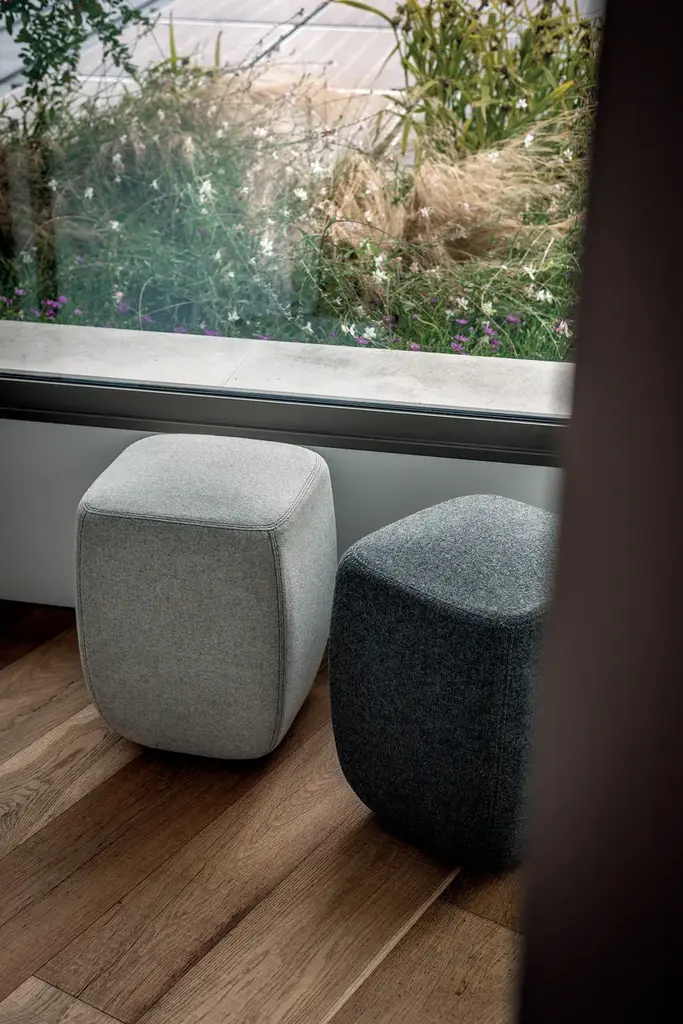 Betty is a stool with soft padding, upholstered in leather or fabric that is hand decorated and stitched with double corner stitching. Stiches available in two different versions.AVAILABLE FINISHES:D1: fabric: canvas, divina melange 2, hallingdal 65, velvet harald, bouclè, milano M107, tokyo M115D2: fabric: mapleD3: leather: camoscio, cristalD4: leather: nabuk, utah