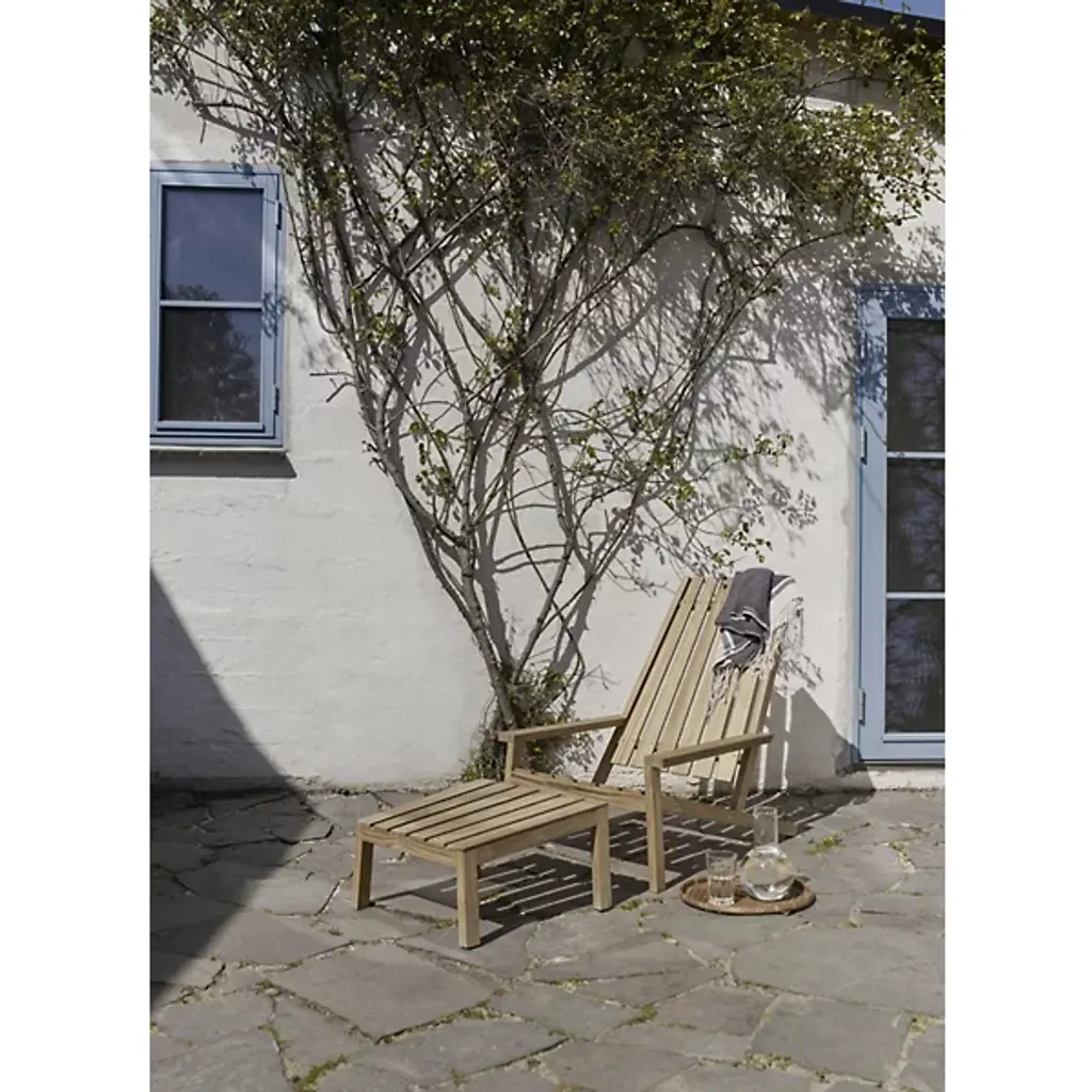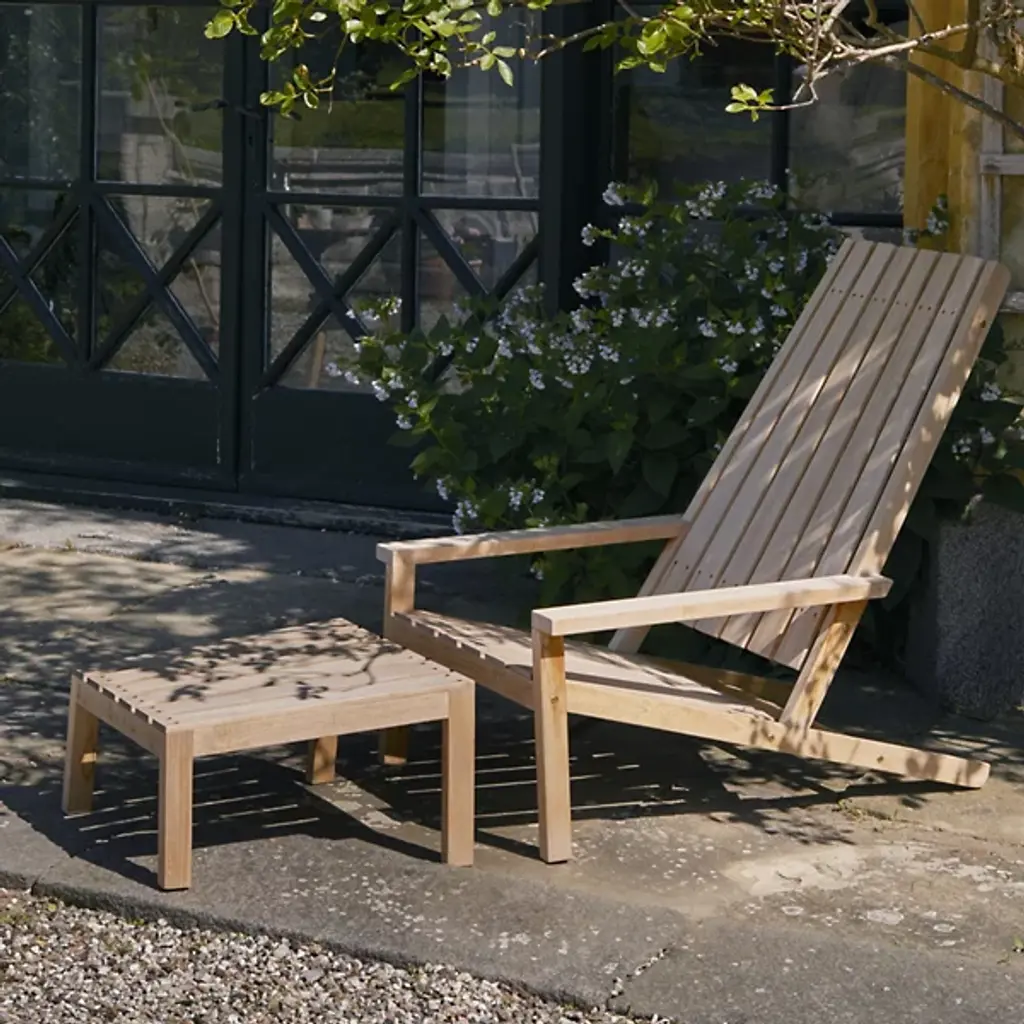 Bring a bold presence to outside gathering spaces or casual indoor settings with the Between Lines Outdoor Deck Stool from Fritz Hansen. A balanced mix of contemporary appeal and Scandinavian simplicity, the Stine Weigelt design is fashioned from sturdy FSC-Certified Teak wood, setting a top of back-angled, parallel slats atop a robust frame. The slats are spaced to permit rain to pass through, while the natural warmth of the wood acquires a silver patina over time.
