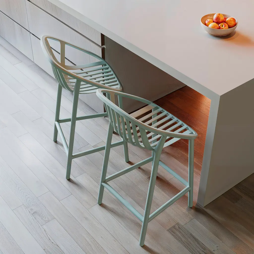 The Bini Stool (Set of 4) from Resol combines lightweight design with a modern reinterpretation of classic cane furniture. Its airy structure creates elegant shadows while ensuring comfort and adaptability. Available in a range of contemporary colors, these stools offer versatile seating solutions tailored to enhance diverse professional and residential environments. Highlights