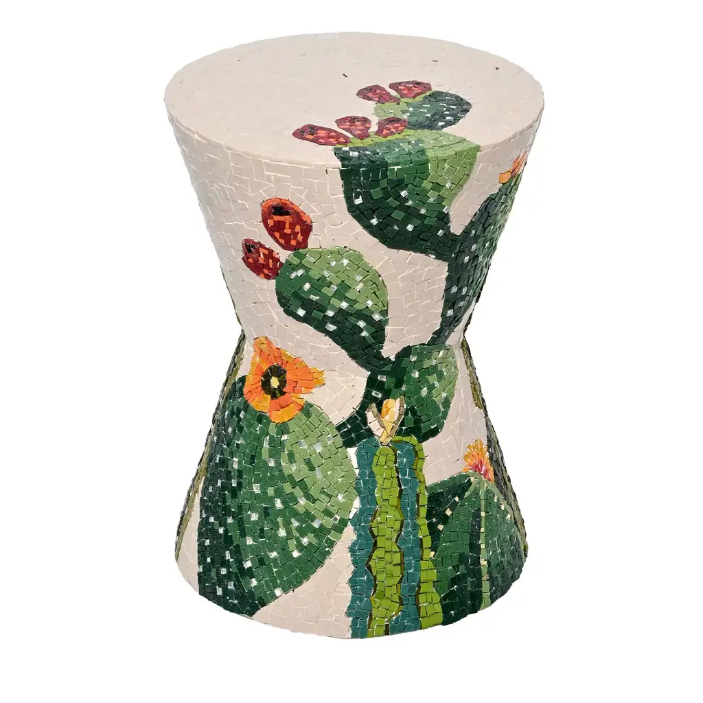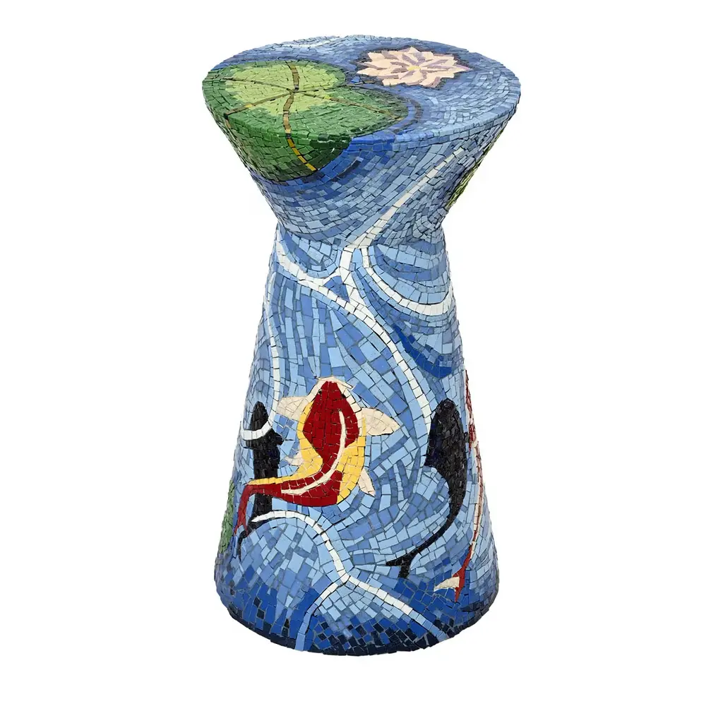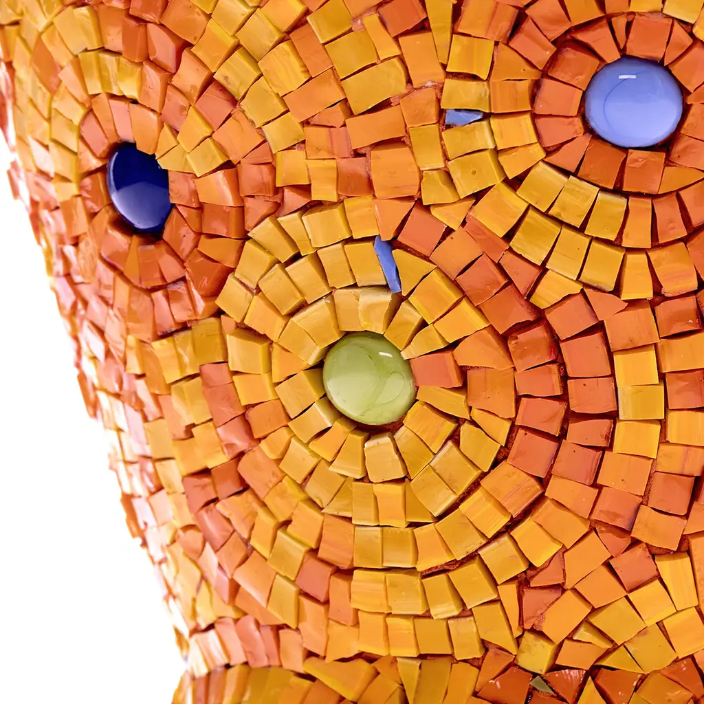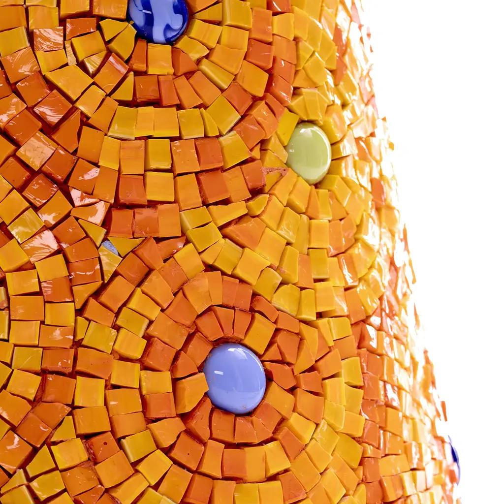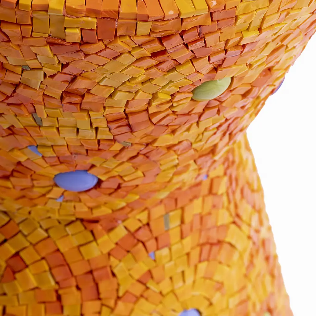 Bisanzio stool is entirely handmade in Venice in the nuance of the sun, with green, light blue, blue and multicolor pearls. This characteristic kind of pattern is very typical in the mosaic tradition. This stool intends to capture its precious 7000 glass mosaics. Entirely handcrafted, this piece is composed of masterfully hand-cut glass mosaic tiles, therefore showcasing unique irregularities in their elegant lines.