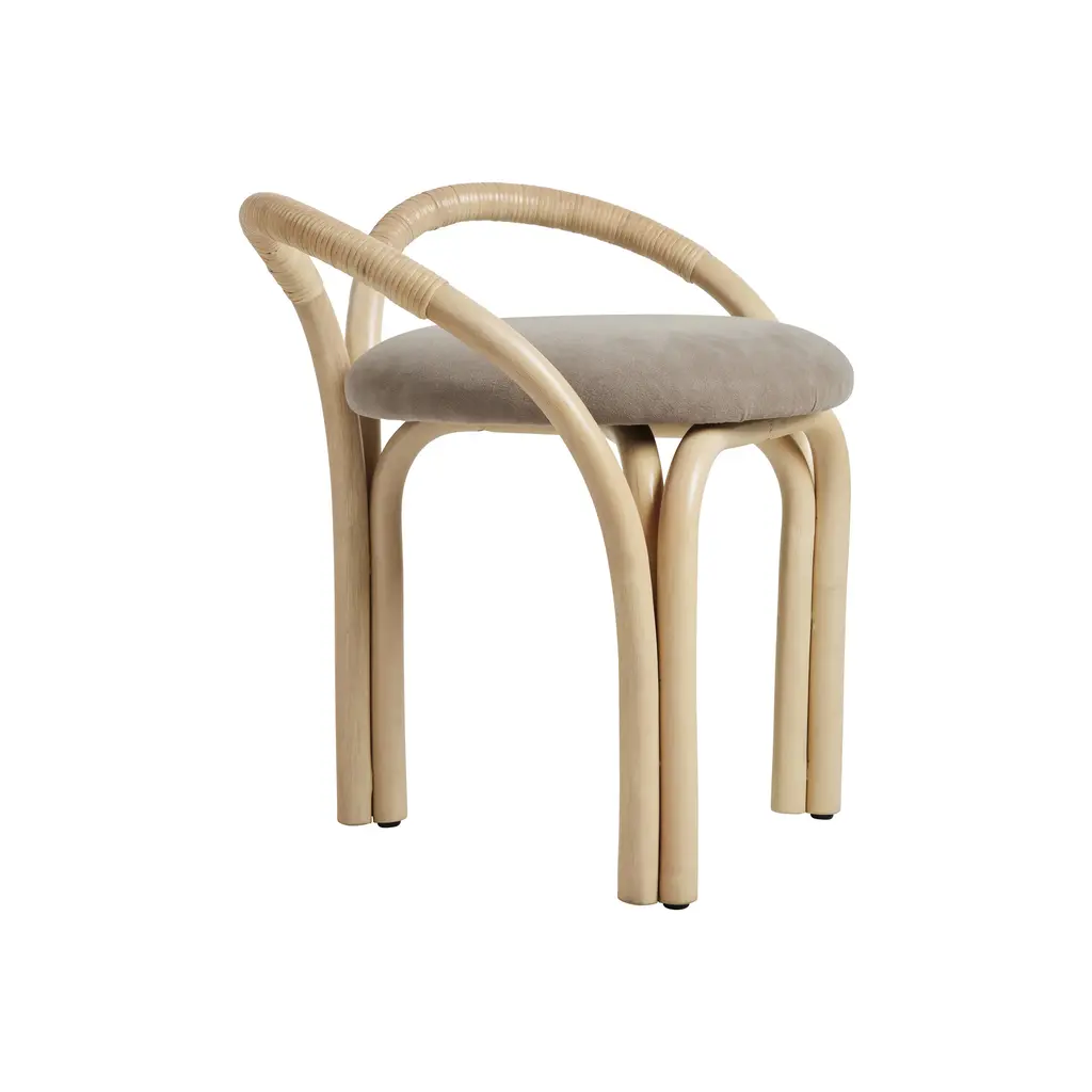The Bistra Stool, designed by Michele De Lucchi’s AMDL CIRCLE for GUBI, reimagines the classic bistro chair with a sculptural, organic aesthetic. Its tree-inspired contours gracefully shape the legs, arms, and backrest, complemented by upholstery featuring a delicate botanical motif drawn from a Leonardo da Vinci fresco. Offered in three frame colors and a range of fabrics, this collection marries artisanal tradition with refined modern craftsmanship, delivering a versatile and timeless seating solution. Highlights