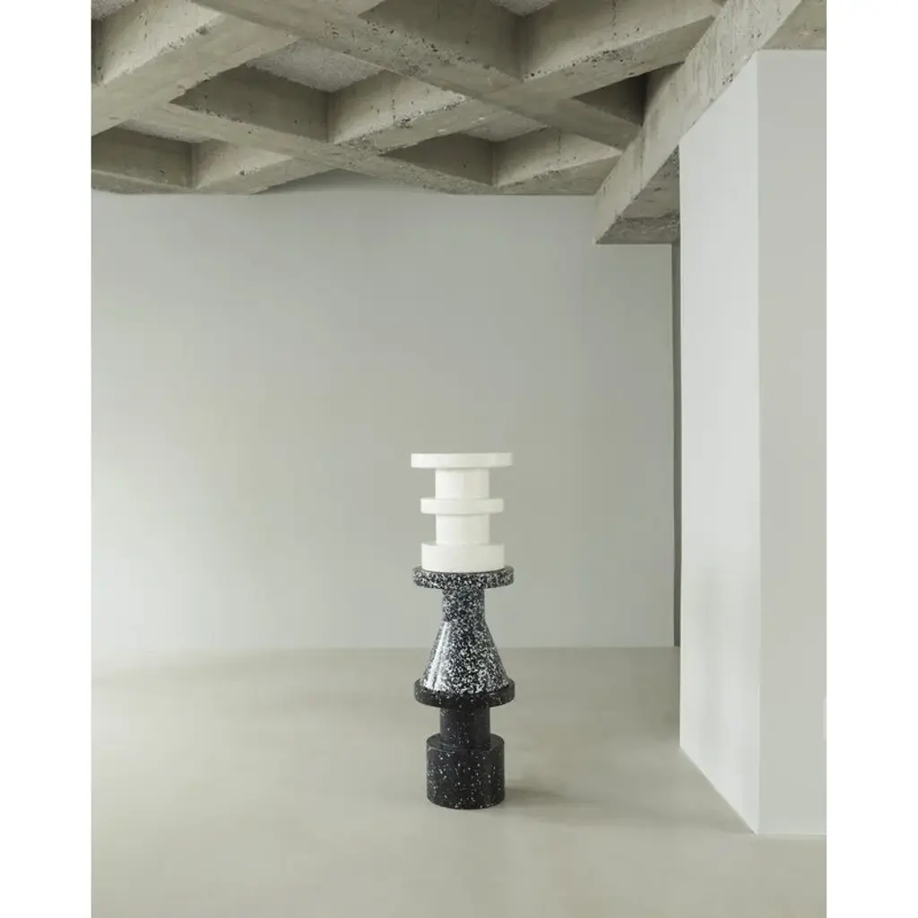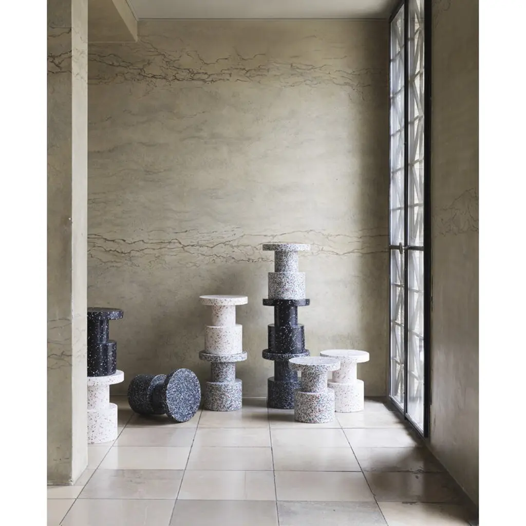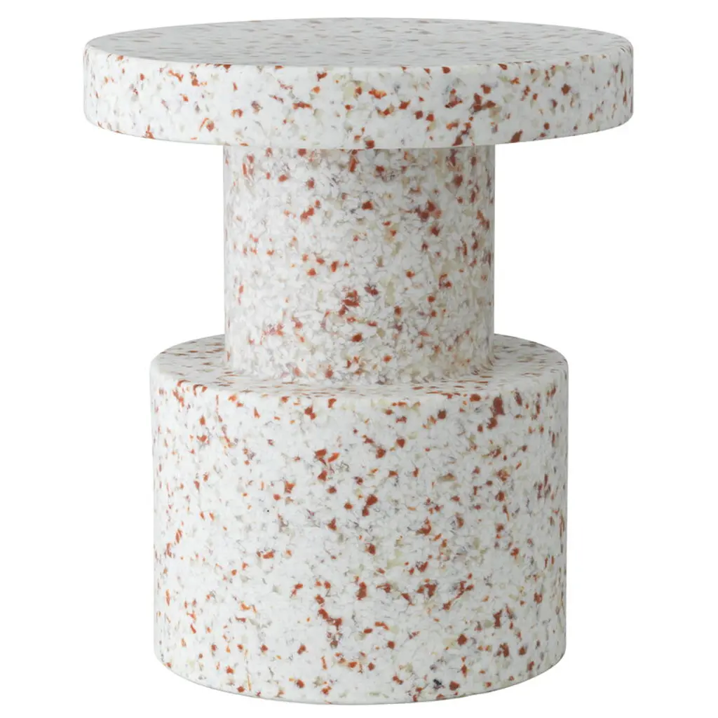 Normann Copenhagen's Bit stool is a delightfully distinct multi-purpose piece of furniture that acts as a seat, side table, and stand for flowers and green plants. Designed by Simon Legald, the stool is made of recycled plastic, with its monolithic shape enlivened by a dotted surface that stems from the material: during the stool's production process, molten bits of colorful plastic settle in each stool in a slightly different way. Therefore, each stool is also unique. The Bit stool can be used both indoors and outdoors, as it withstands temperatures from -10°C to +50°C.