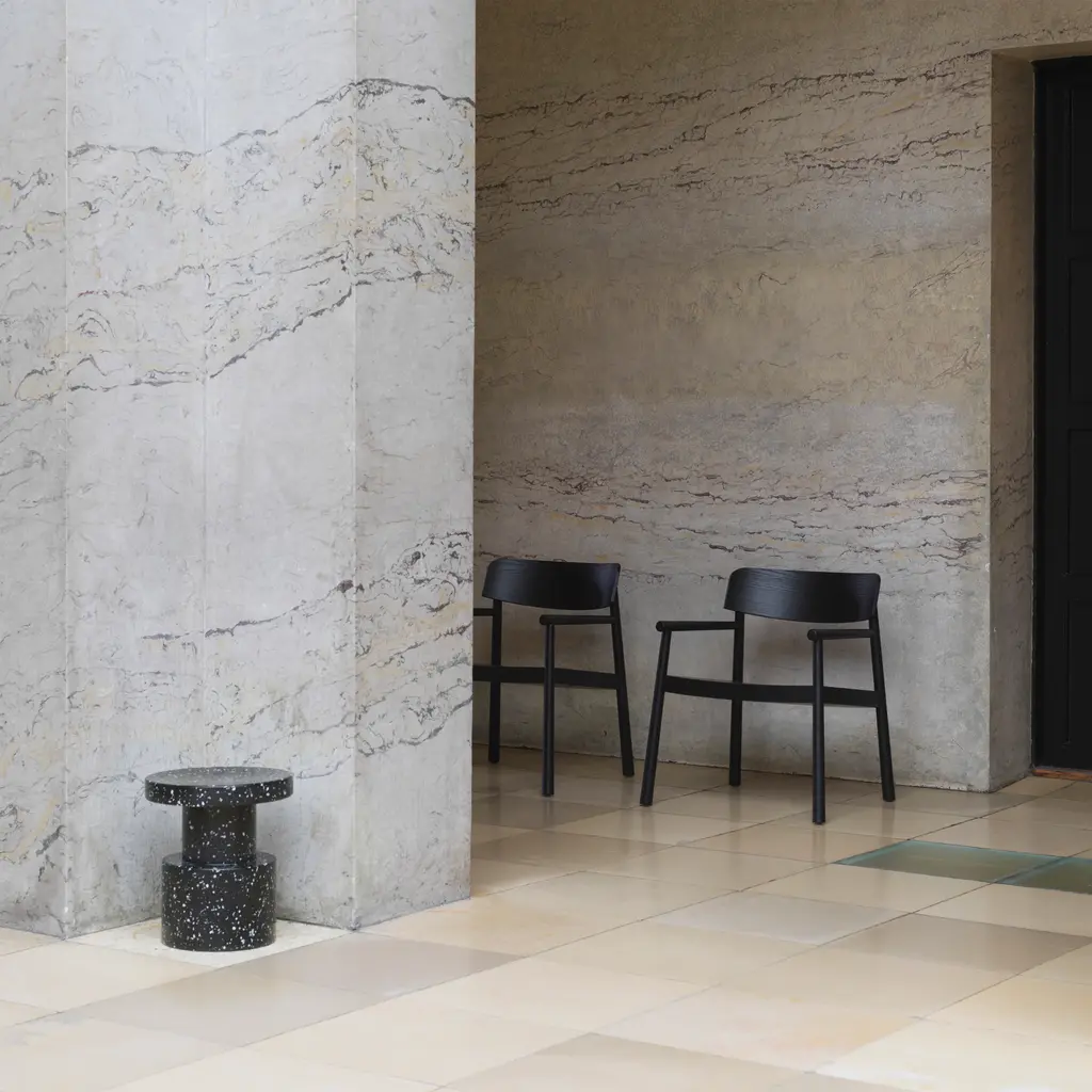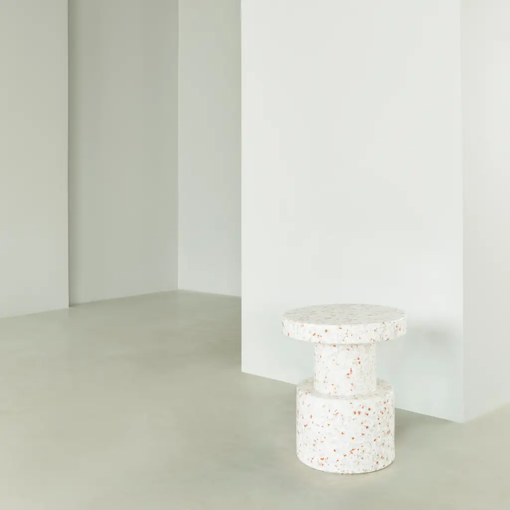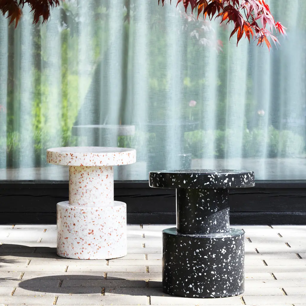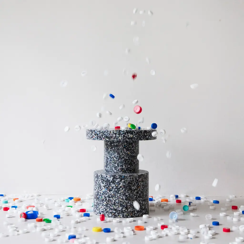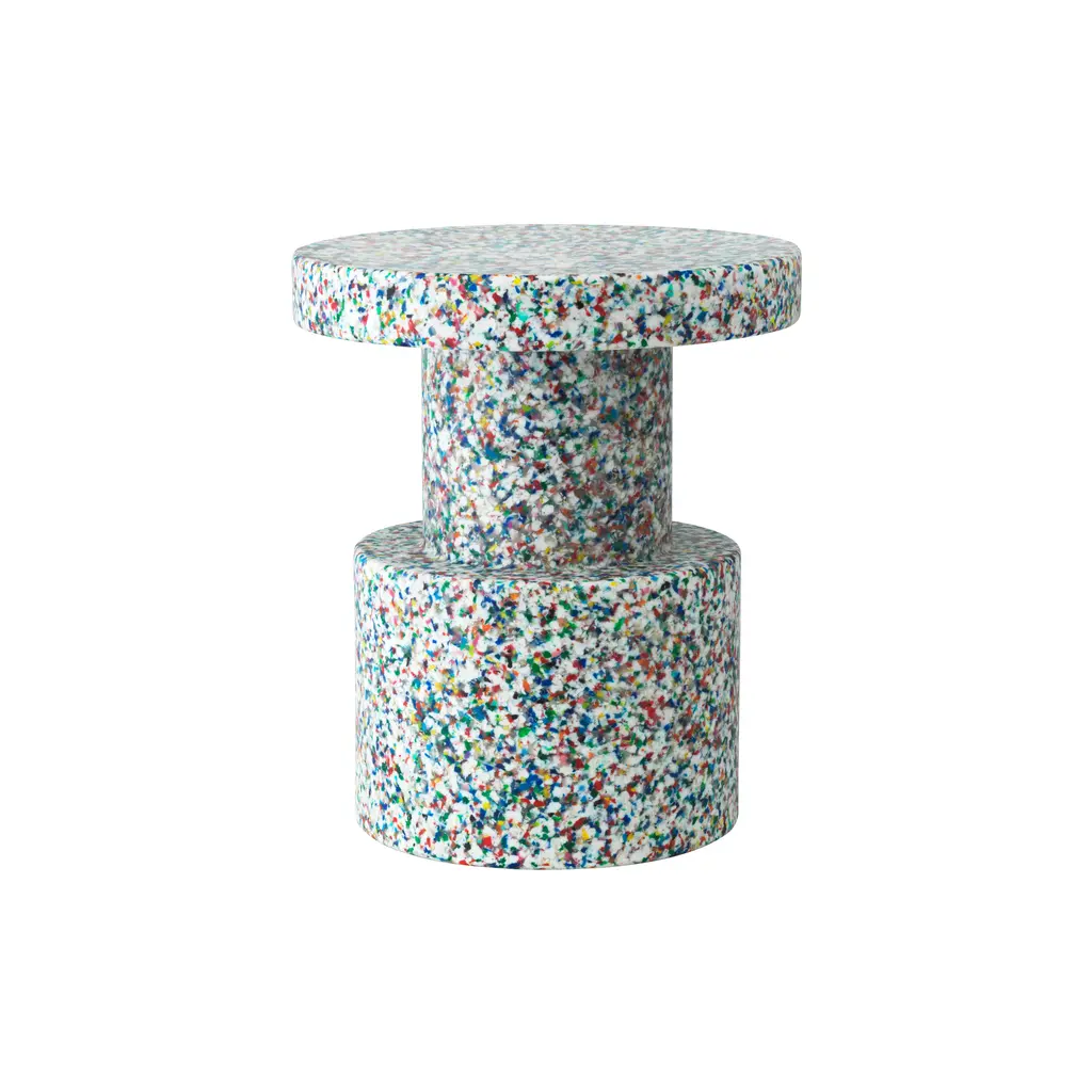 With a pleasingly pixelated surface, designer Simon Legald’s indoor-outdoor stool is made of small bits of 100% recycled household and industrial plastic. Bit can serve as a pedestal for a floral arrangement, a handy side table or as impromptu seating for that unexpected guest. Choose from black or white—both in either a solid or multicolor flecked coloration—for this playful take on a column shape.