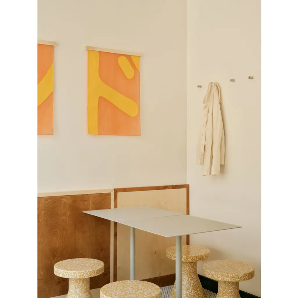 Normann Copenhagen's Bit stool is a delightfully distinct multi-purpose piece of furniture that acts as a seat, side table, and stand for flowers and green plants. Designed by Simon Legald, the stool is made of recycled plastic, with its monolithic shape enlivened by a dotted surface that stems from the material: during the stool's production process, molten bits of colorful plastic settle in each stool in a slightly different way. Therefore, each stool is also unique. The Bit stool can be used both indoors and outdoors, as it withstands temperatures from -10°C to +50°C.