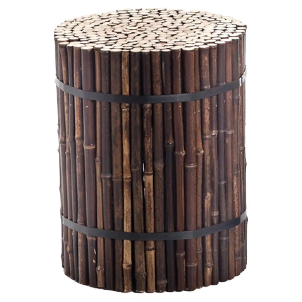 Black 19/21 is a black bamboo ottoman. Available in two sizes, they recall the idea of a bundle of bamboo canes.Black is a collection that enhances the naturalness of wood and black bamboo by experiencing the warmth and vibrations of these materials. A constant reference to the earth is underlined by the choice to maintain the natural appearance of the materials that make up the products, for a look with an exotic and at the same time minimal charm. The collection consists of poufs, chairs, floor lamps and a screen.
