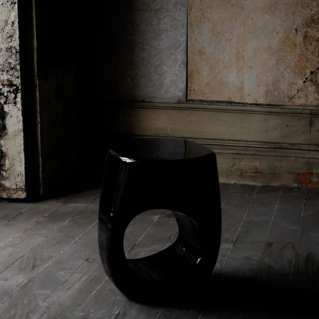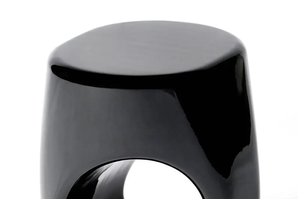 Stool black lacquered made in fiberglass,lacquered in black with high gloss finishing.Available in gold lacquered finish, on request.
