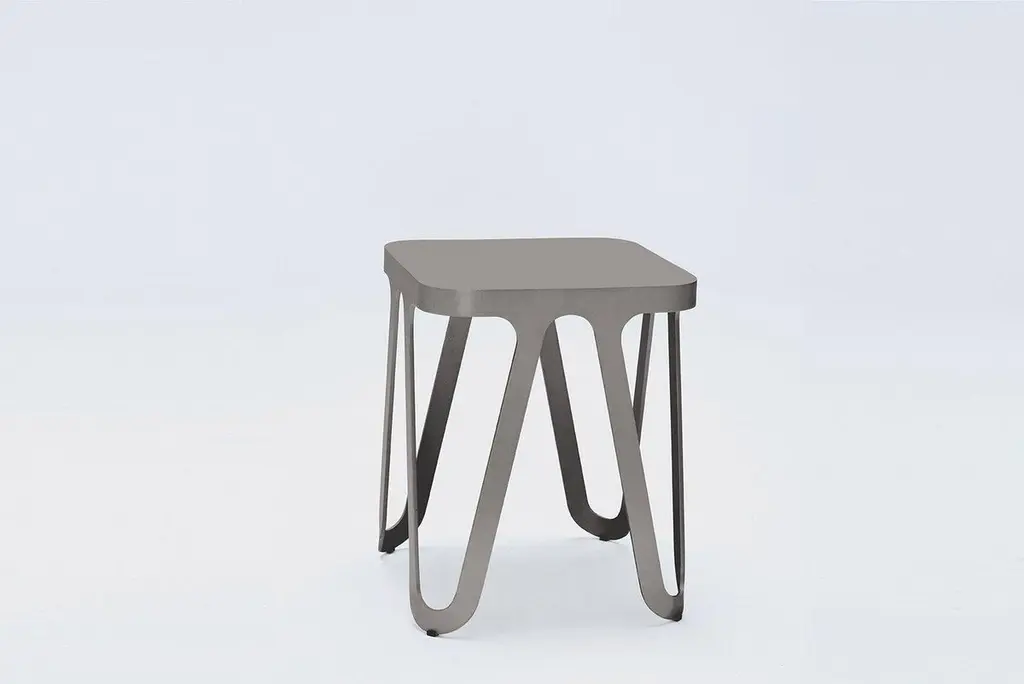Black loop stool by Sebastian SchererMaterial: aluminiumDimensions: 38 x 38 x 44 cmAlso available in woodColour: blackAlso available in ocean blue, silk grey, quartz grey, coral red, lemon yellow, rose, signal whiteThe Loop series is characterized by its elegant and futuristic design language. The soft, yet geometric lines have a Scandinavian design reference, but also reminiscent of metal furniture of the Bauhaus era. All furniture in the series follow the same design principle. The only 6 mm thin aluminum frame is cut from a metal sheet and then bent. This gives it its stability and forms its characteristic, loop-like silhouette. This consistent design principle and craftsmanship make the Loop series so unique. Small embedded plastic gliders are discreetly integrated in the frame without disturbing the overall impression.