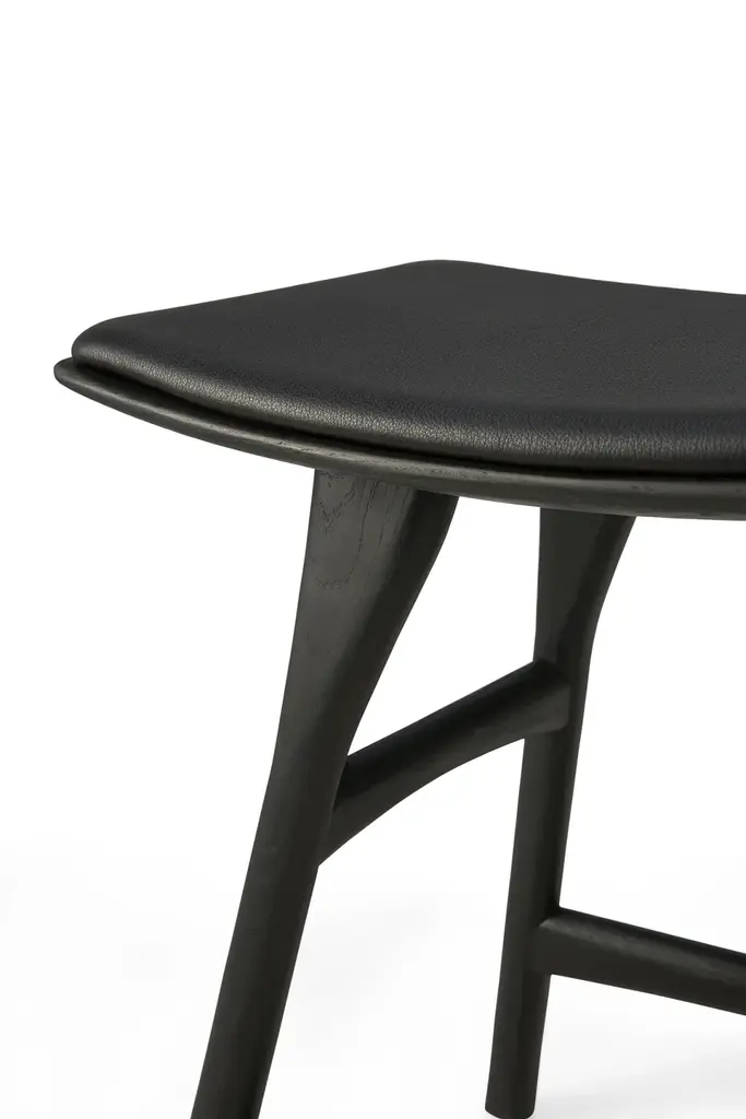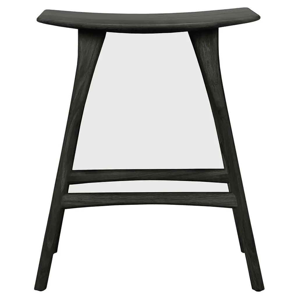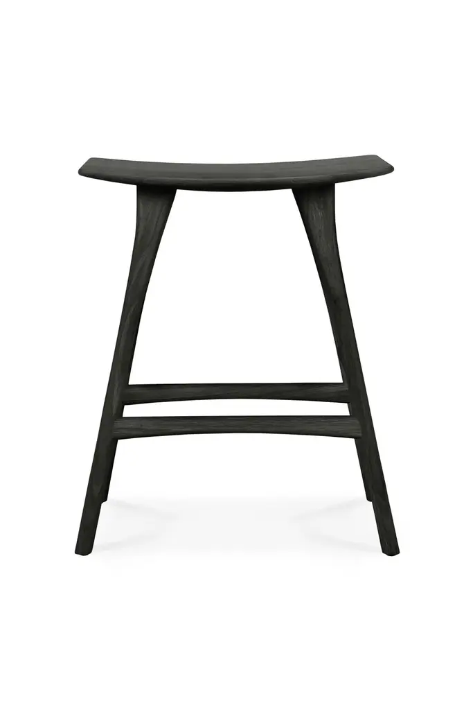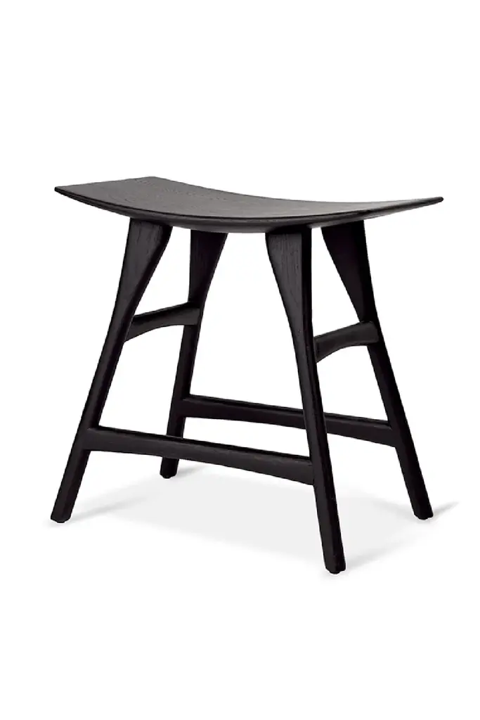 This Black Oak Accent Stool is one of Ethnicraft's most popular designs because of its versatility. The height of this varnished solid oak Osso stool adds yet another option to its wide array of possibilities - as an elegant and sturdy kitchen stool, a side table, or as an extra seating solution in the living area. The slightly curved seat and footrest offer a comfortable seating in your dining room, and are also great by themselves against a wall, or next to a sofa.