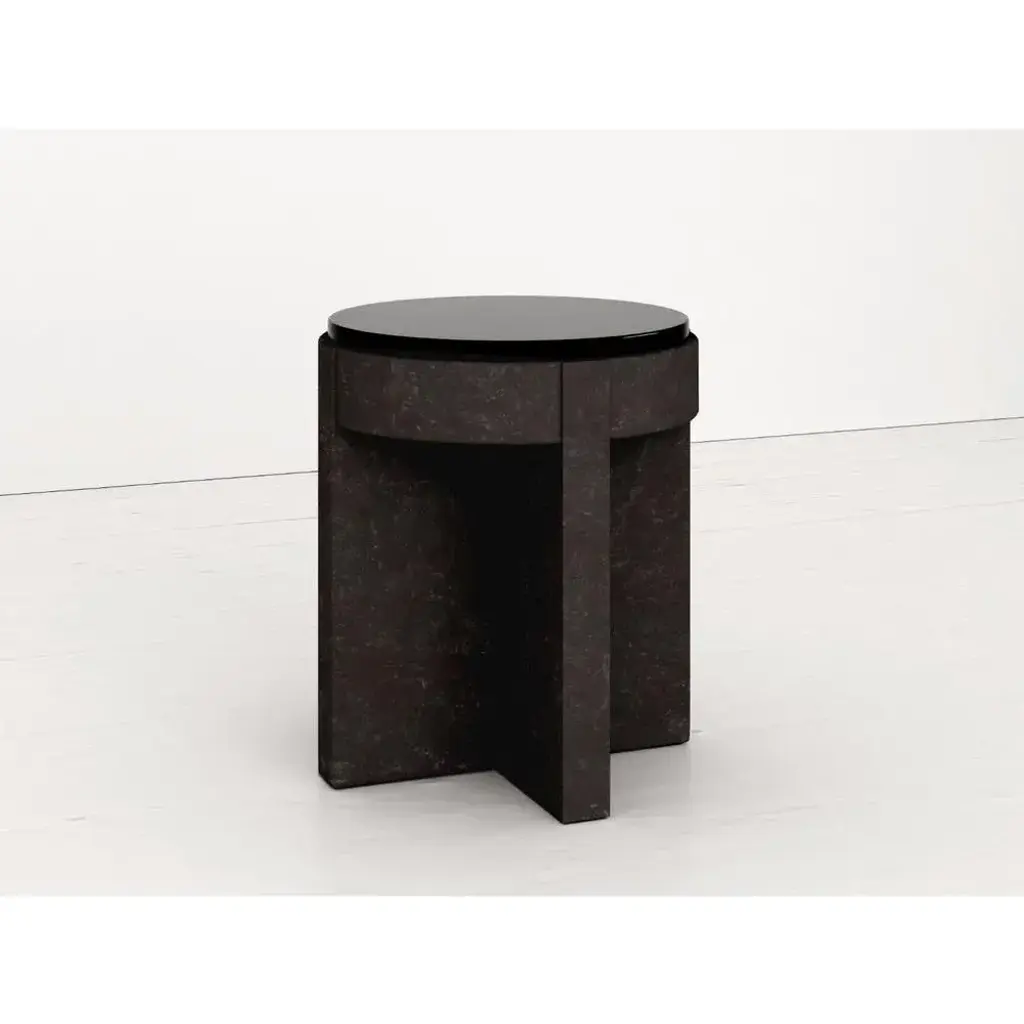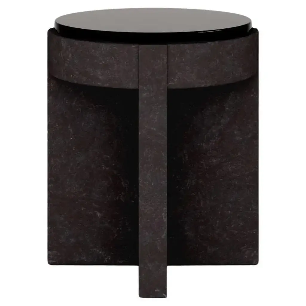Object 05 black seating by volta one of a kind. dimensions: d 40,5 x w 40,5 x h 47 cm. Materials: cork and ceramic. Also available in diffentent colors. the meï collection was born from the desire to highlight the cork material. A material known for its common and popular use, cork deserves special attention in terms of its aesthetic, constructive and ecological properties. Starting from cork, the volta agency has developed with the trizzano workshops several methods of compression to recycl this material. The patterns that were created then revealed all the subtlety of this material. To sublimate it even more, several colorimetric shades have been developed. The cork is thus bathed and colored, giving it a whole new image.