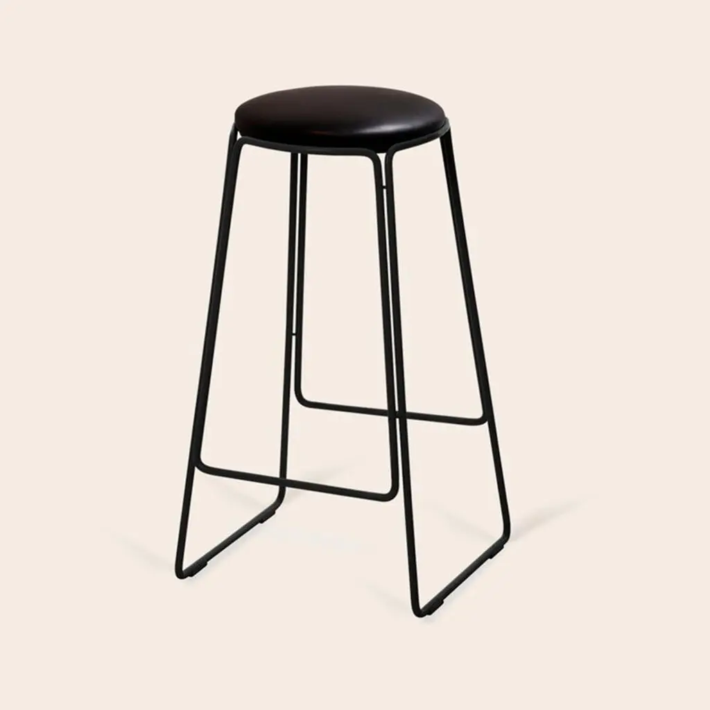 Black Prop Stool by OxDenmarqDimensions: D 41 x W 41 x H 70 cmMaterials: Leather, Black Powder Coated SteelAlso Available: Different colors available.OX DENMARQ is a Danish design brand aspiring to make beautiful handmade furniture, accessories and lighting in natural high-quality materials in fair prices. " When we set out back in 2003, we were primarily working with vegetable-tanned saddle leather thus the name OX was a tribute to our unique leather and the animal providing it.The other half of our name, DENMARQ, is chosen to emphasize that we are a Danish design brand based on the Danish design tradition and that most of our furniture is produced in Denmark. However, DENMARQ not only refers to our home country, but also to the co-founder and designer - DENnis MARQuart.Before finishing his design studies at the Copenhagen Design University, Dennis Marquart did a Blacksmith education. This background is extremely useful when developing and designing products."OX DENMARQ handmade products will only get more beautiful as time passes and natural patina sets in.Many OX products are shaped around marble or vegetable-tanned saddle leather. Stone and leather are materials that will, and should, get marks over time. But they will also age with a very special beauty. When you learn to appreciate the beauty of maturity and of time passing, you have learned to appreciate patina the way it should be appreciated.