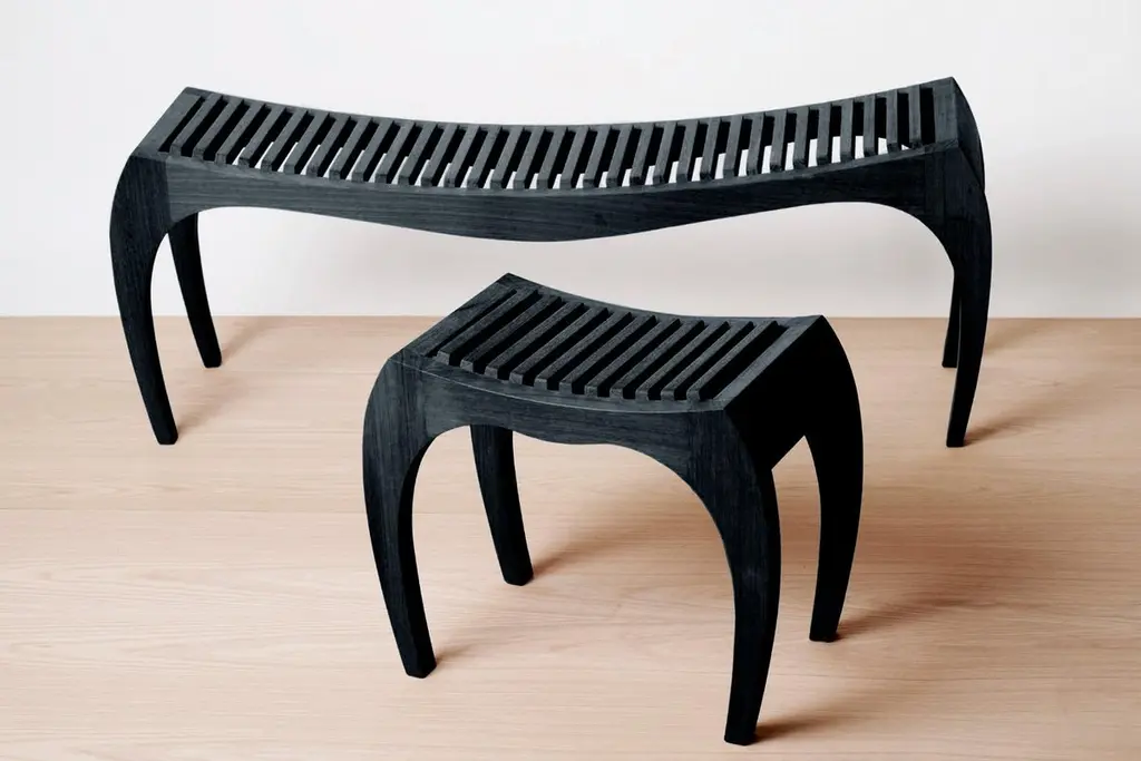 Black stool Rumbo by Jean-Baptiste Van den HeedeSigned and numberedDimensions: L 45 x W 31 x H 40 cmMaterials: Maple woodAlso available in solid cherrywood and other woods on demand.The RUMBO stool is a unique, limited series design and each piece is signed by its author Jean-Baptiste Van den Heede. It is made of solid cherry or maple wood and other woods on demand.An ideal piece of furniture for bedside, house entrance, hotel hall, lobby, bathroom…An elegant design of high quality.The RUMBO stool was selected by the Valencia Furniture FairJean-Baptiste Van den Heede defines himself as a cabinetmaker-designer and an artist of academic training and family tradition. He has achieved unique designs of national and international prestige and has several awards in avant-garde furniture.Born in Argentina in 1966, from an Argentine mother and a Belgian father. At 5 years of age he and his family moved to Belgium.To train as a wood professional, he first studied 4 years of carpentry. Then he continued training in cabinetmaking and carving for 5 more years. Always in search of contributing something more to his trade, he studied furniture and antique design, culminating this with the study of Sculpture at the Royal Academies of Fine Arts in Liège (Belgium) and graduating with honors.Work the stone, the wood and experience the forge. From the beginning it is directed towards a search for signs, abstract writings and unrealistic figures in analogy with other “Primitive” cultures. He taught drawing and sculpture in Brussels at the private school “la main et l´ esprit” As well as summer courses in Liege (Belgium) “les ateliers d´art contemporain”.In 1995 he went to Barcelona where he taught and investigated the reliefs of different supports such as trees, floors, and especially sewer covers.He searched again analogies between current art and Prehistoric, African art, etc.Participated in several exhibitions both at the artistic level and avant-garde design.In 2002, he moved down to Albacete and then to a town in the province where he still works.It is defined as “a search engine without haste or guidelines.” He says: “I only work when I feel a strong and positive inspiration invade me, an energy that I capture from matter, from the air and that I return doing the work until I feel a connection with it.”Private workshop of contemporary art in Letur (Albacete) until 2009.He currently works in his workshop-studio in the Sierra de Madrid (Guadalix de la Sierra) following his career as a cabinetmaker-designer and artist while teaching his trade to students interested in wood.