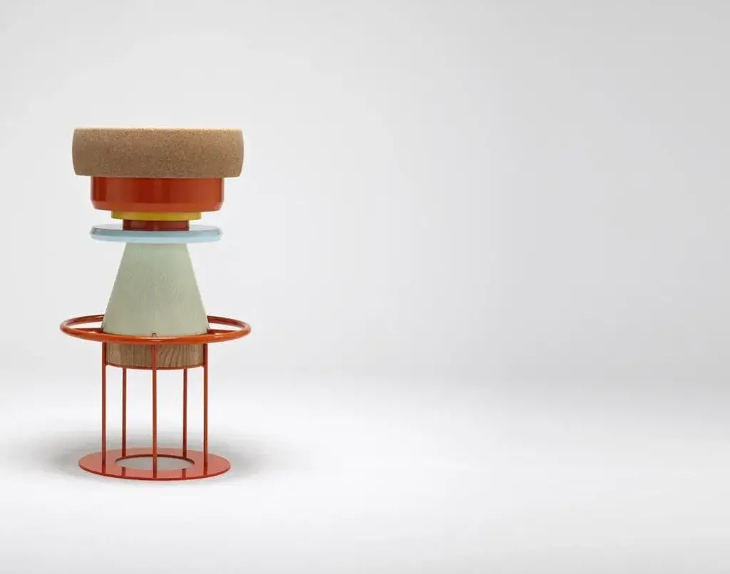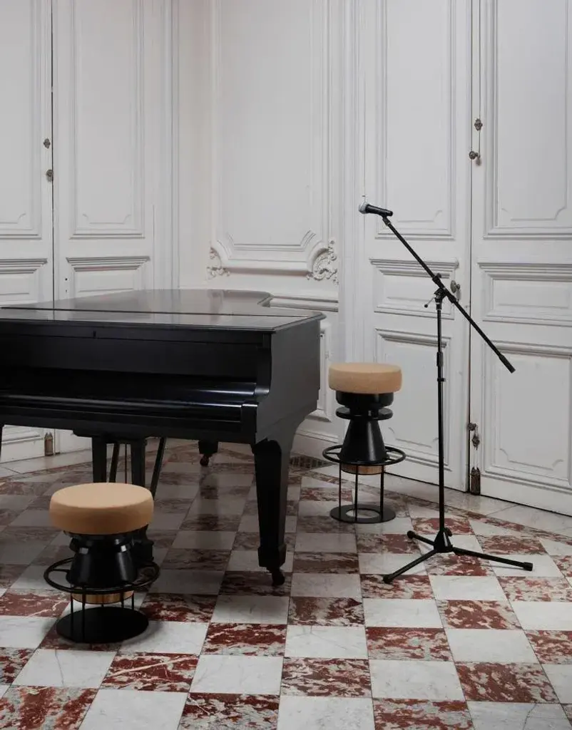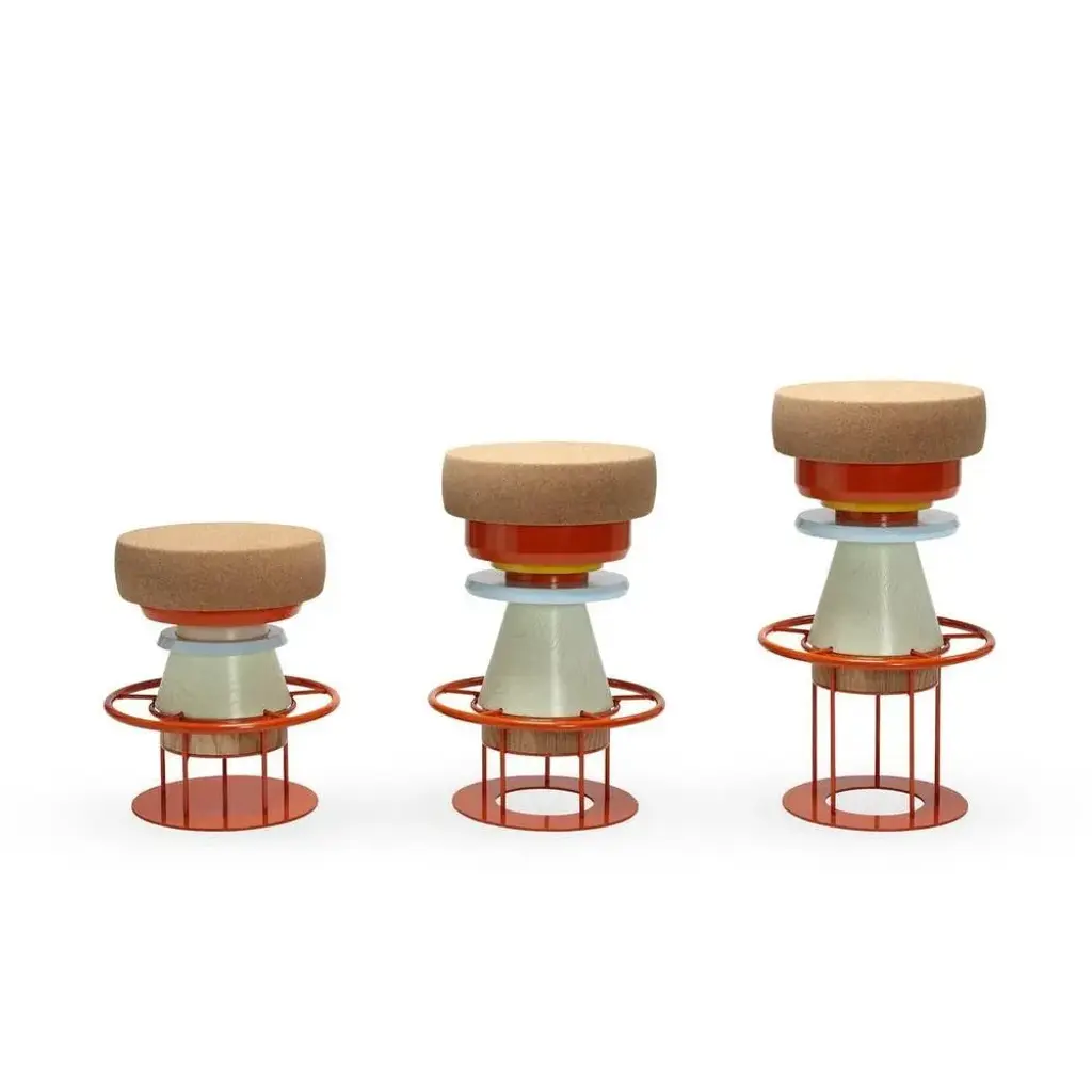 Black Tembo stool, note design studio Measures: Height 19 inches (low stool) or 30.3 inches (high stool) Diameter 14 inches Weight 30.8 lbs (low stool) or 37.5 lbs (high stool) Materials and construction: Lacquered steel structure, solid wood (beech) and lacquered MDF, natural cork base. Tembo is a stool made of stacked pieces of wood, metal, and cork. This ‘modern TOTEM’ has a playful and bulky aspect recalling children’s toys and African tam-tam (Tembo means elephant foot in Swahili). This piece is attributed to the mentioned designer/maker. It has no attribution mark and no official proof of authenticity, however it is well documented in design history. I take full responsibility for any authenticity issues arising from misattribution