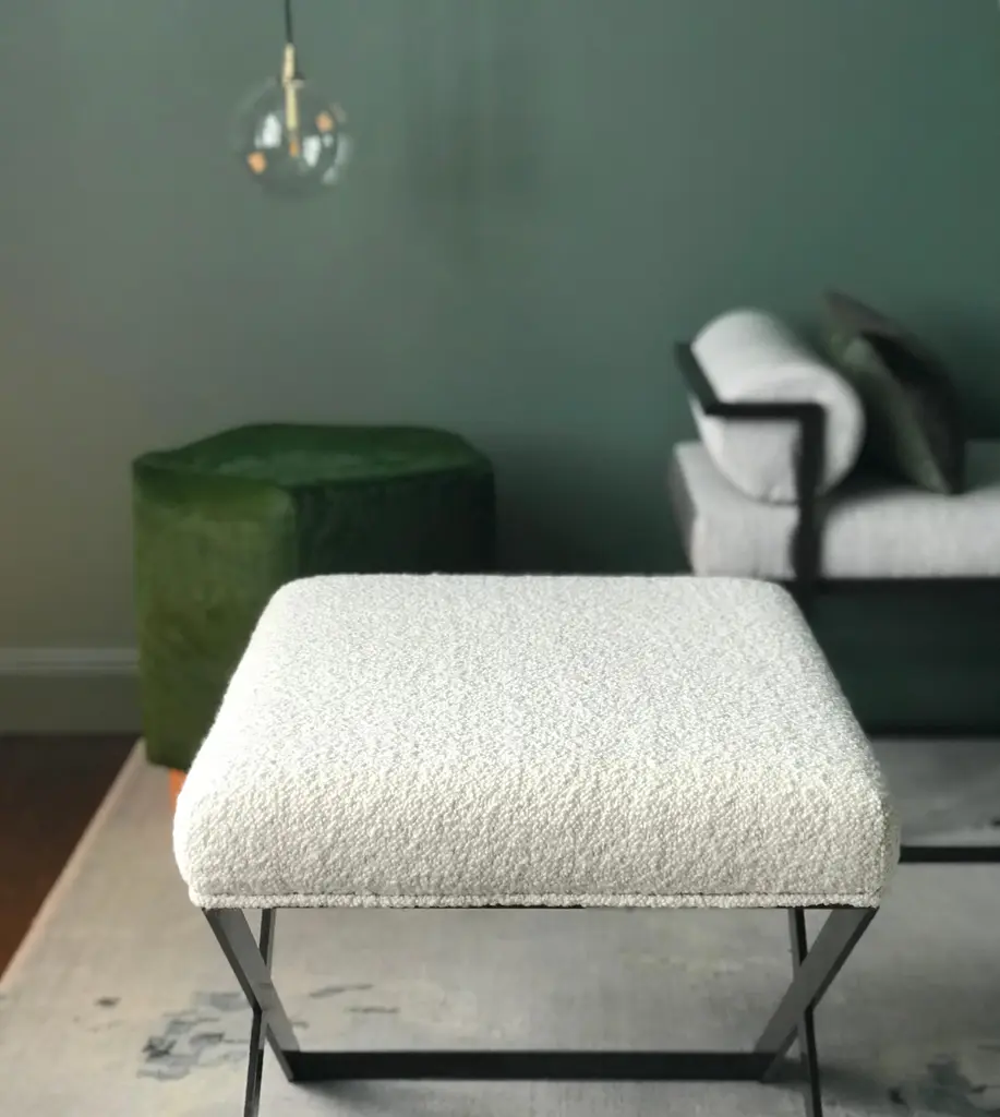Blackened Steel And Bouclé Stool By Casa Botelho