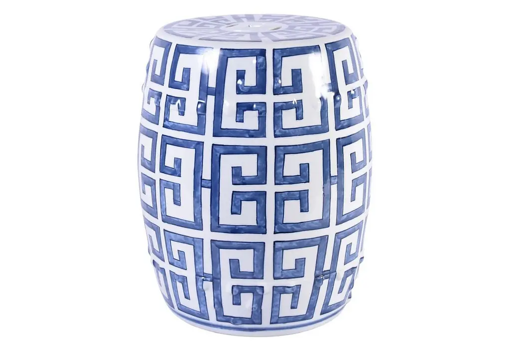 Crafted of high-fired porcelain for exceptional durability, this versatile Blue & White Hex Geometric Garden stool shows off bamboo-inspired designs in classic blue and white. Suitable for indoor and outdoor use.