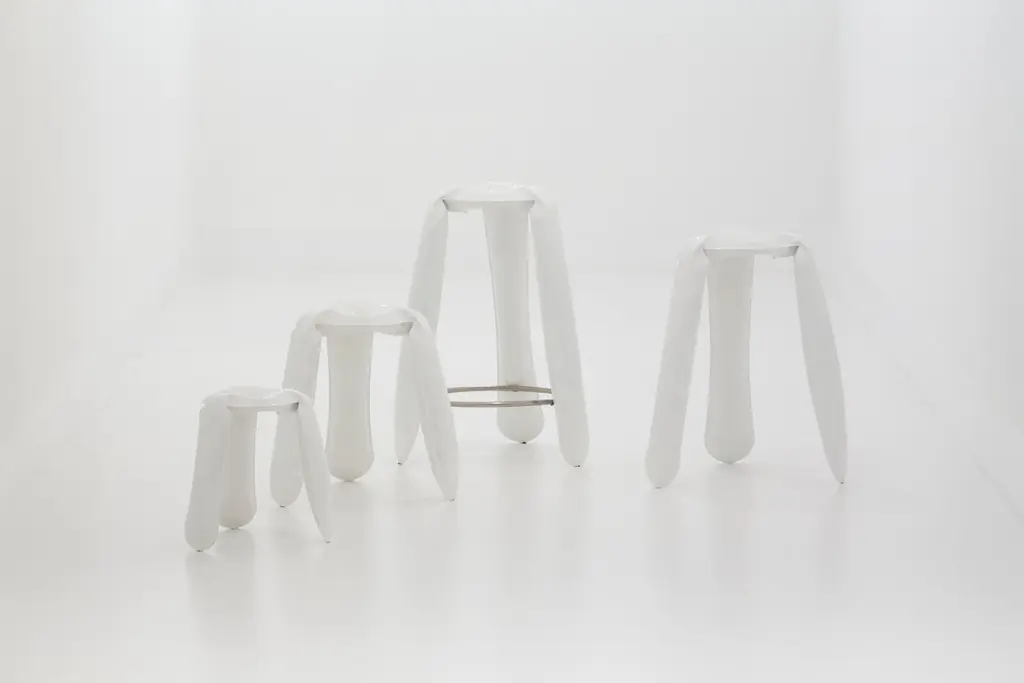 Blue grey Aluminum Standard Plopp stool by ZietaDimensions: D 35 x H 50 cm Material: Aluminum. Finish: Powder-coated. Available in colors: graphite, moss grey, umbra grey, beige grey, blue grey. available in stainless steel, aluminum, and carbon steel. Also available in standard, kitchen, and bar sizes. PLOPP stool is an icon and a bestseller of Zieta Studio. It is not only ordinary seating – its intriguing form defies the rules of geometry and contains the history of Oskar Zieta’s research on the properties and possibilities of metal. PLOPP, or “Polish folk air-pumped object”, is material proof that the creative and artistic aspect of design can be included in a highly advanced engineering form.The unique, toy-looking, and playful shape of PLOPP is an effect of an innovative forming method – FIDU technology. Forms made in FIDU are very light but also very durable. Since it was introduced to the market in 2010, it had already won such prestigious awards as the Red Dot Design Award 2008, the German Design Council Award 2008 and the Forum AID Award 2009.PLOPP Standard Aluminium features stools made of lightweight, eco-friendly material and is available in several finishes.PLOPP is also available in various sizes: PLOPP Mini, PLOPP Standard, PLOPP Kitchen, and PLOPP Bar.About Zieta: Zietas main goal is to deliver uniqueness and customization in design and construction while keeping the production, transport, and warehousing innovatively efficient.This is how they imagine the future world: Light, durable structures of customized applications produced on demand out of one-of-a-kind parts, yet efficiently.They use a computer-controlled production process. Customized pattern, customized form, customized function, one-of-a-kind product, and outstanding precision are what they deliver.You will find all of this philosophy reflected in the products. The research, they discover new possibilities, they play with forms and they deliver a beautiful, innovative, surprising outcome to people who love the design and who care about design development.They believe their work is a valuable contribution to the world of design not only by the unique beauty of the forms but most of all by opening ultra-innovative opportunities of forming and new paths for the world of the future. __