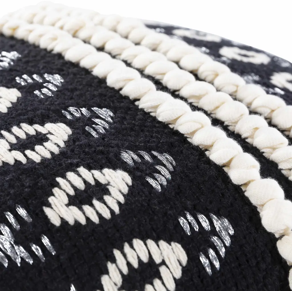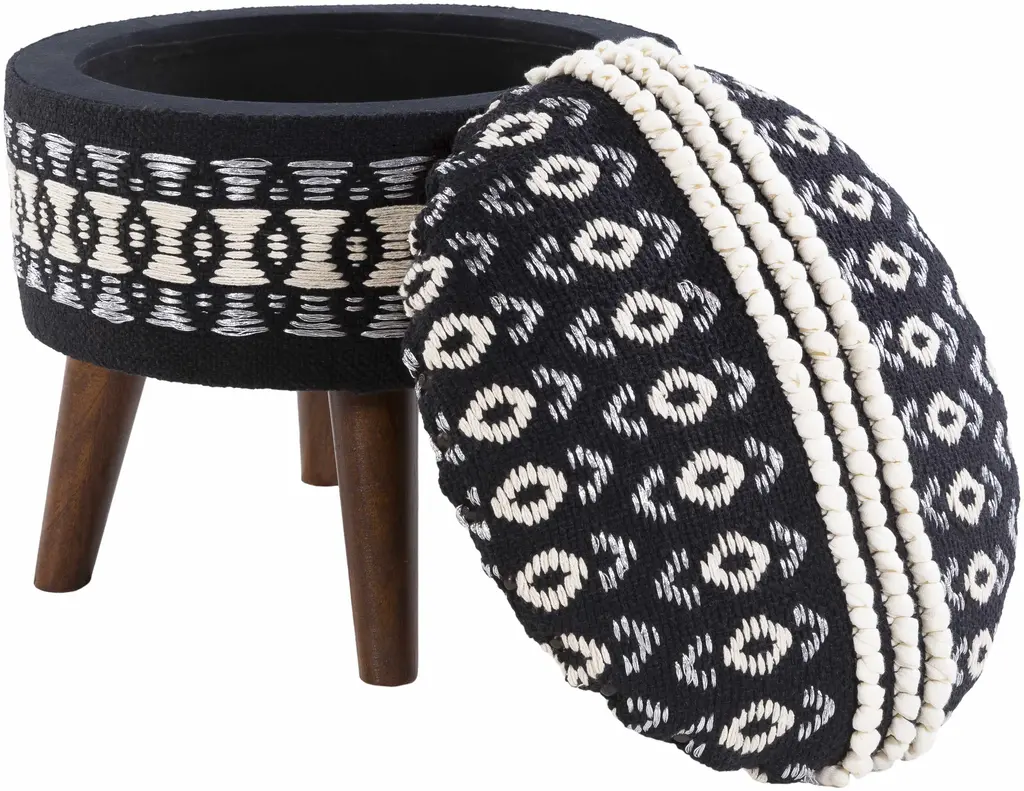 Collection: Bonawon Colors: Black, White, Light Slate Construction: Hand Woven Material: Upholstery: Cotton,Base: Mango Wood,Fill: 100% Polyurethane Foam Styles: Contemporary Made In: India