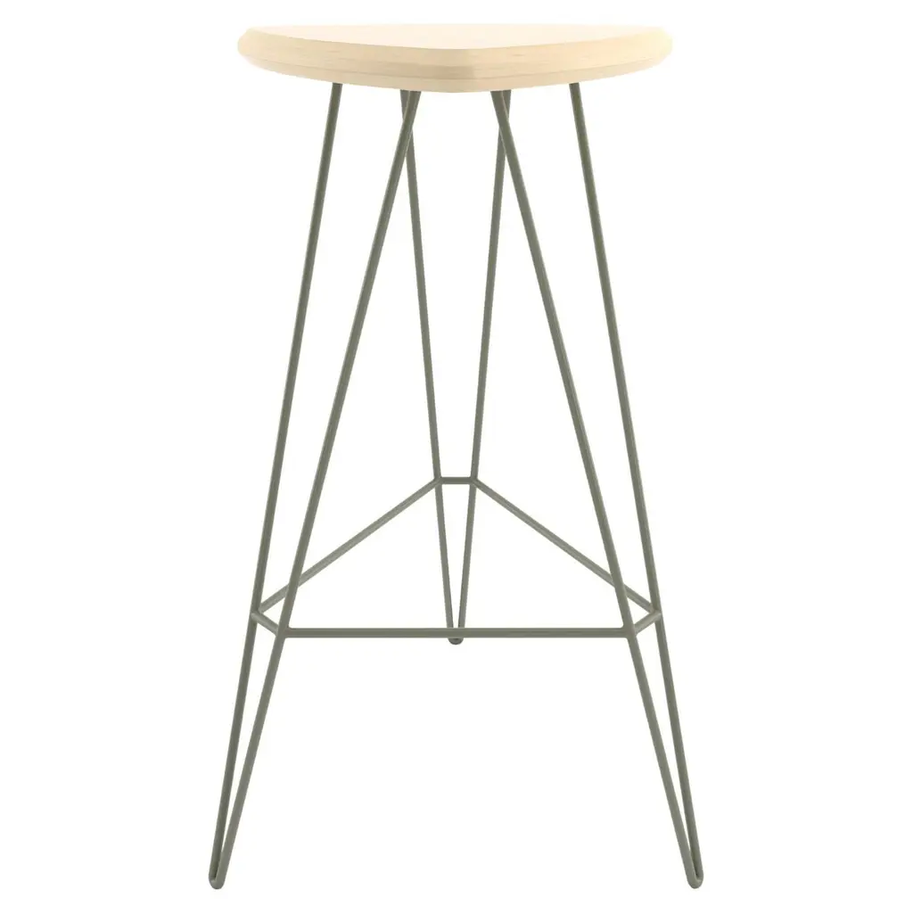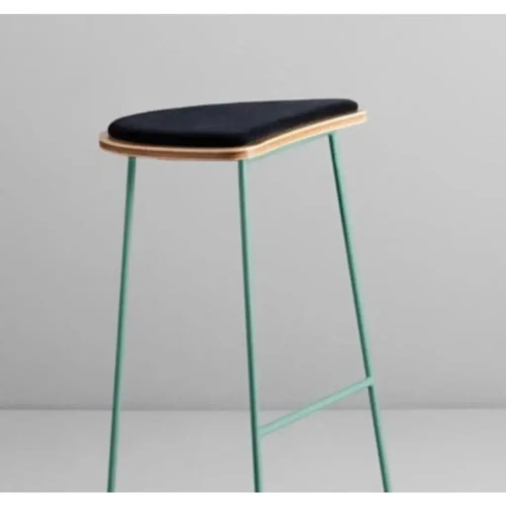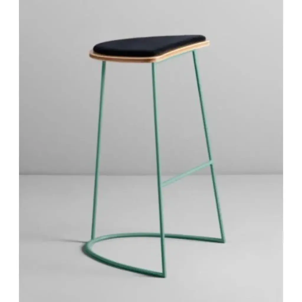 Boomerang stool without backrest by pepe albargues dimensions: w47, d48, h79 materials: paint coated iron structure (copper /chromed / gold iron structure) plywood backrest and seat covered with a natural oak wood layer upholstered seat top this piece is attributed to the mentioned designer/maker. It has no attribution mark and no official proof of authenticity, however it is well documented in design history. I take full responsibility for any authenticity issues arising from misattribution