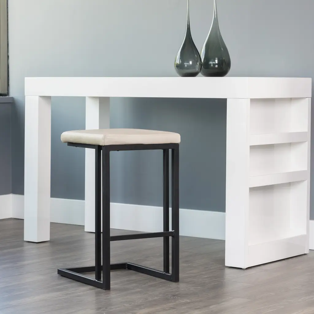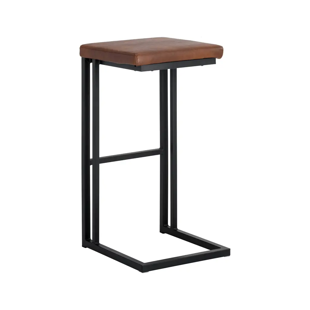 Experience modern industrial style and comfort with the Boone Stool (Set of 2) from Sunpan. The backless seat in bravo cognac faux leather and cantilever frame in black powder-coated steel create an elegant addition to any dining, kitchen, or bar space. Each piece is unique with natural-looking color variations and markings, adding charm to any environment. Highlights