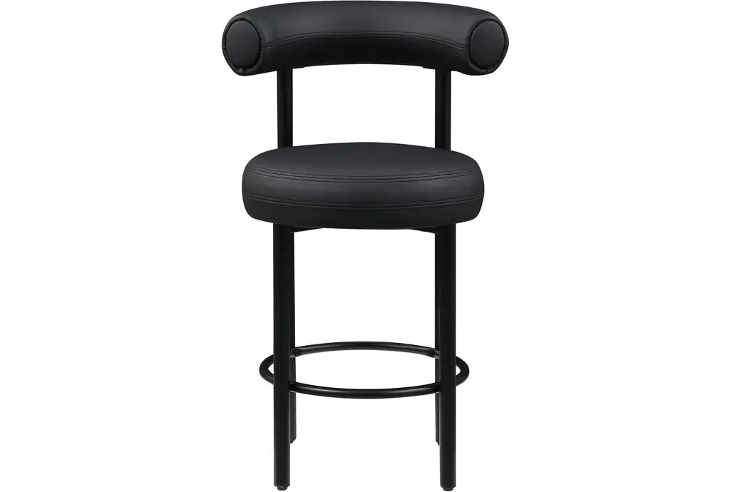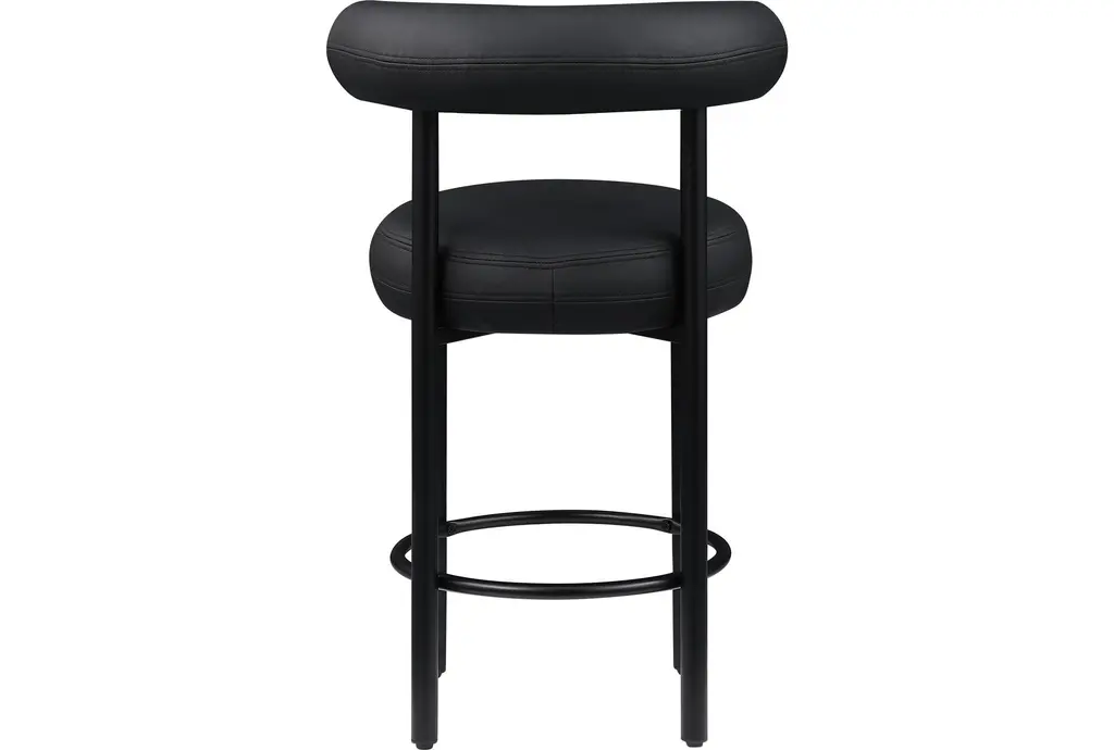Enhance your dining experience with the Bora Black Vegan Leather Fabric Upholstered 35.5" Counterstool. This modern set of 2 armless stools combines style and functionality, perfect for your kitchen or dining room. The matte black leg frame and curved design add a contemporary flair to your space.