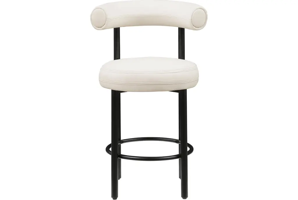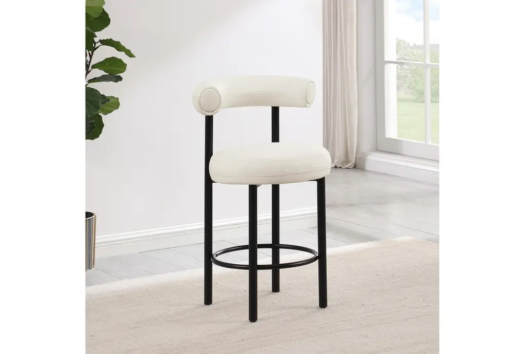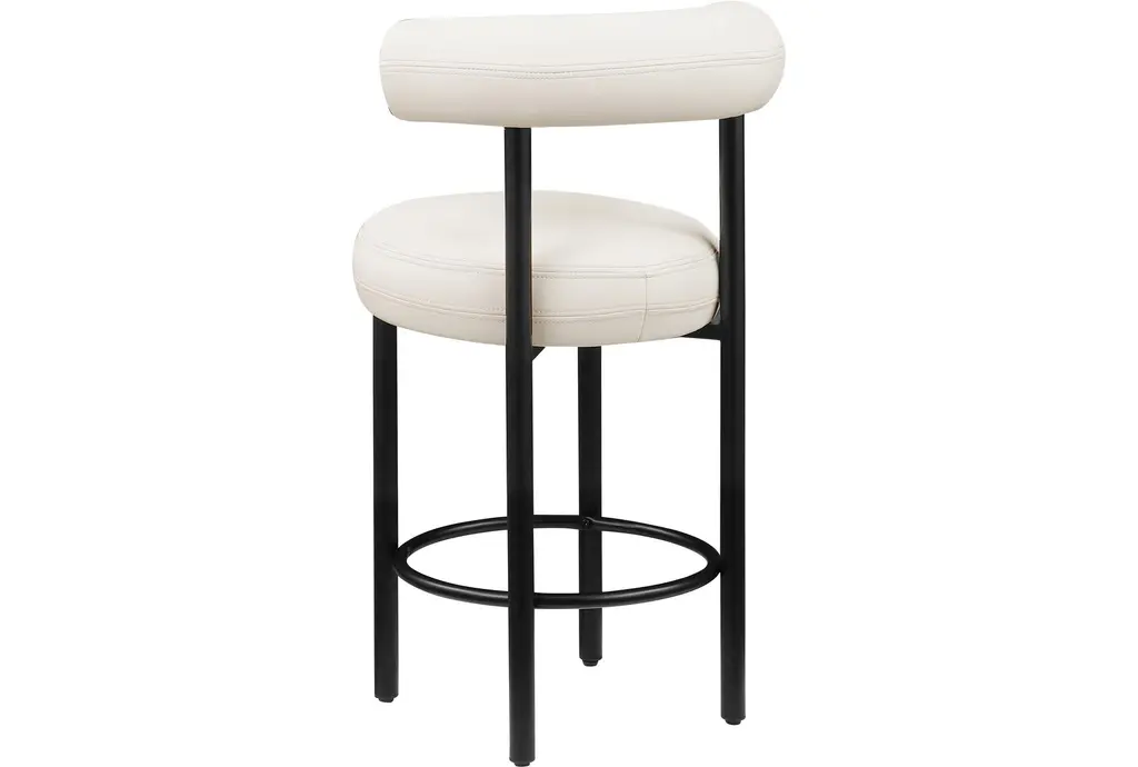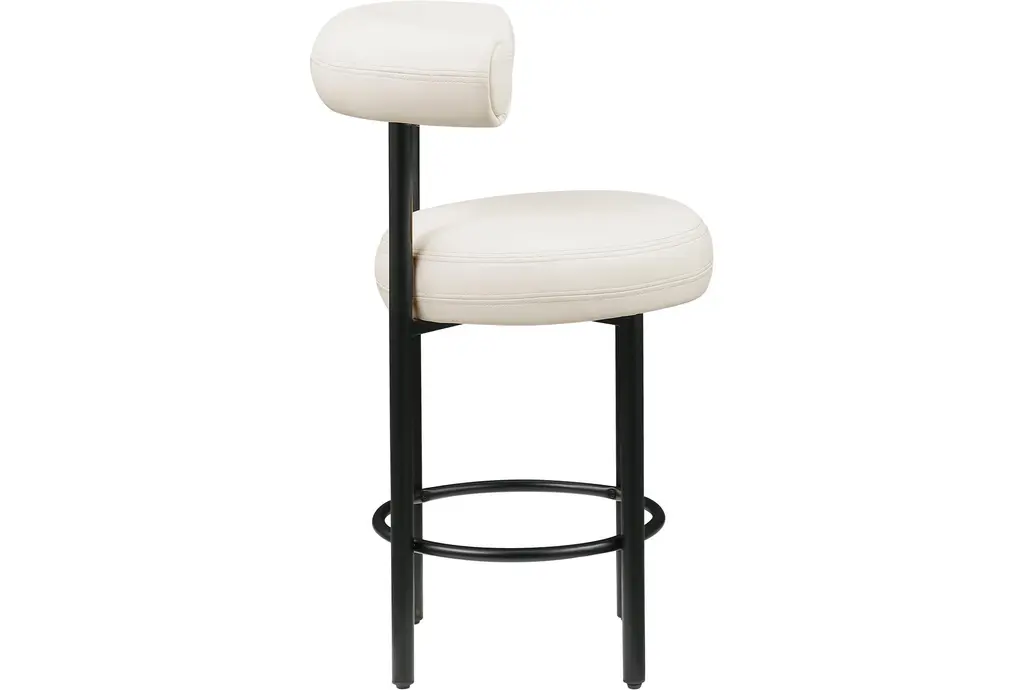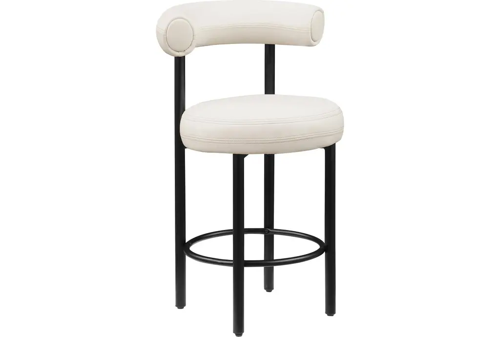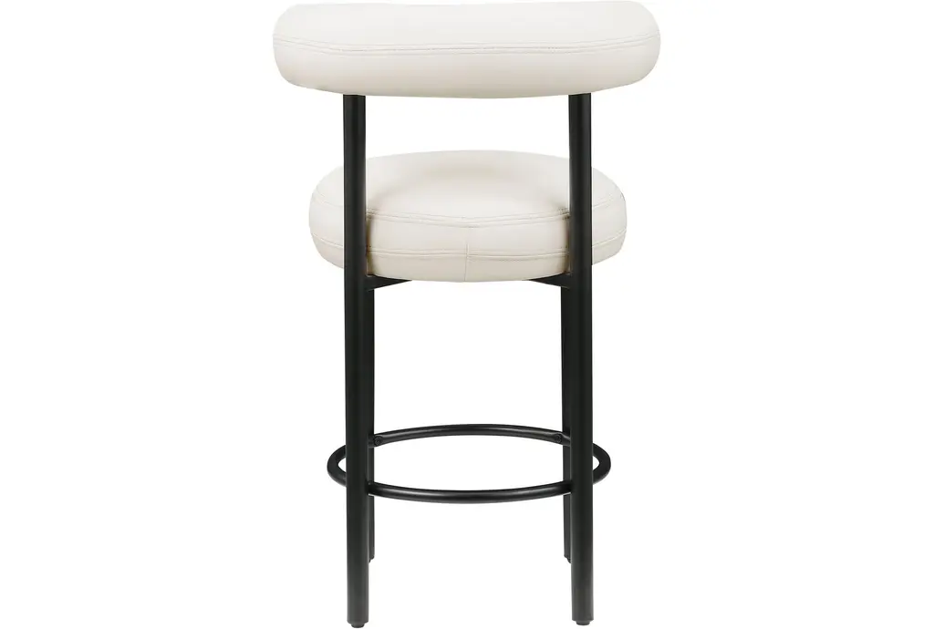 The Bora Cream Vegan Leather Fabric Upholstered Counterstool is a perfect addition to your modern dining room or kitchen. Featuring a tall, armless design with a curved shape, these counterstools provide both style and comfort. The matte black leg frame complements the soft cream vegan leather upholstery, creating a chic and contemporary look.
