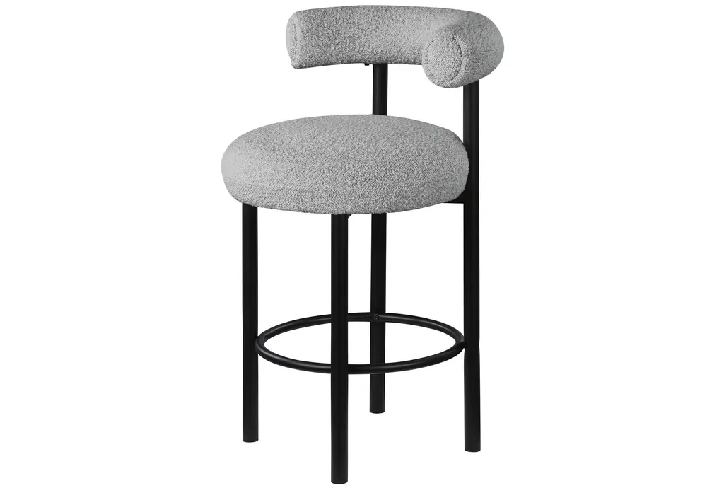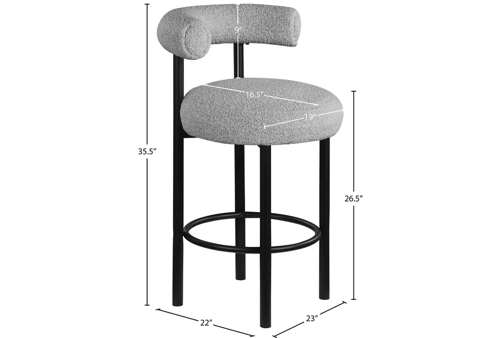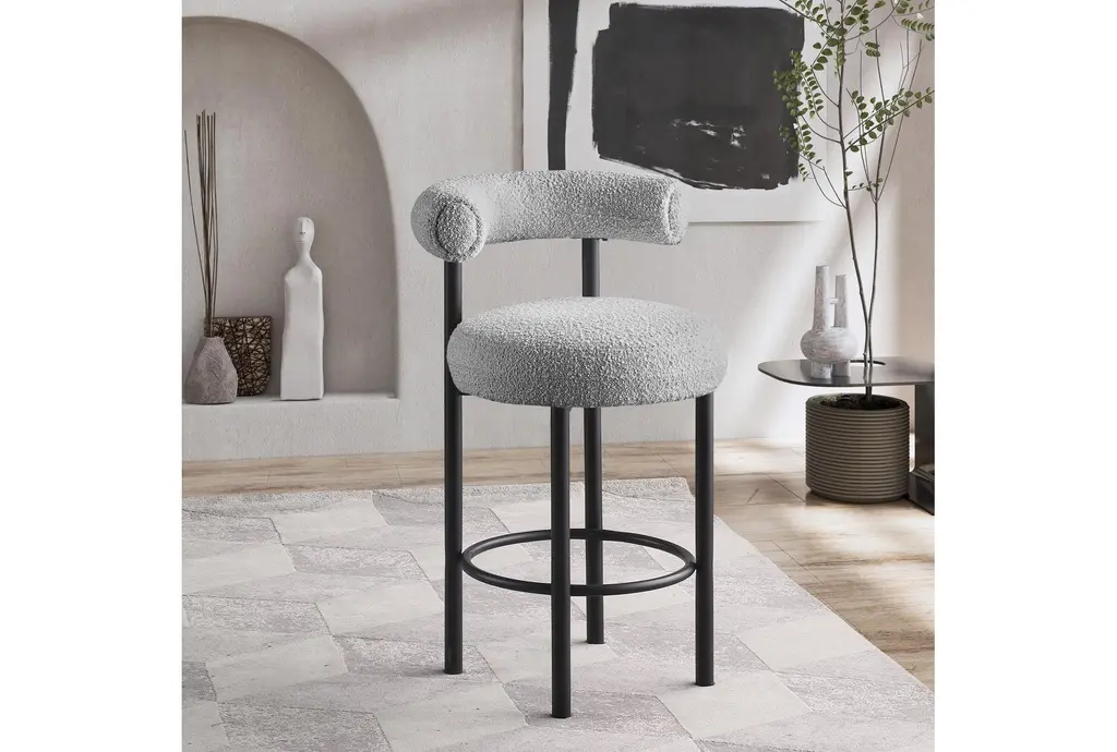 Enhance your modern living space with the Bora Grey Boucle Upholstered 35.5" Counterstool with Matte Black Leg Frame Set of 2. These stylish counterstools feature a rich grey boucle fabric that adds a touch of sophistication to any room. The contemporary design is complemented by a sturdy iron metal frame with a matte black finish, ensuring both durability and elegance.