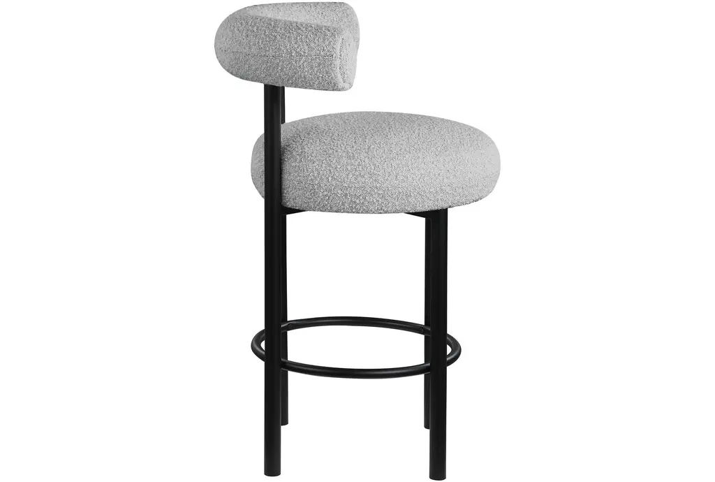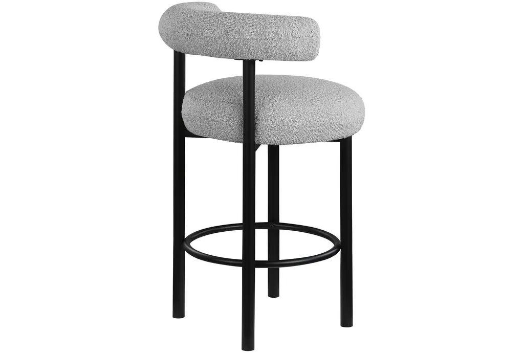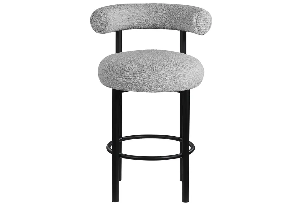 Bora Grey Boucle Upholstered 35.5" Counterstool With Matte Black Leg Frame Set Of 2 | Armless