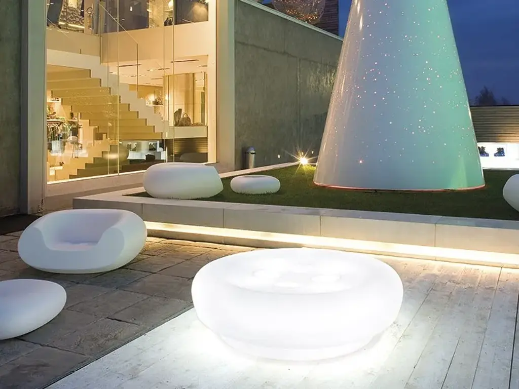 Bot-One is a playful and ironic pouf created by Fabio Della Fiorentina, also available in its luminous version. Its shape reminds a botton: in this way, a simple object of everyday life becomes the protagonist of Design, creating a big pouf ideal for irreverent contract and amazing events. Bot-One is made in polyethylene with the technology of rotational moulding and it is suitable for indoor and outdoor settings.Versions:- standard- lacquered- with light: 4 x 15W - G95 / E27