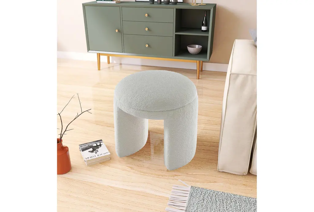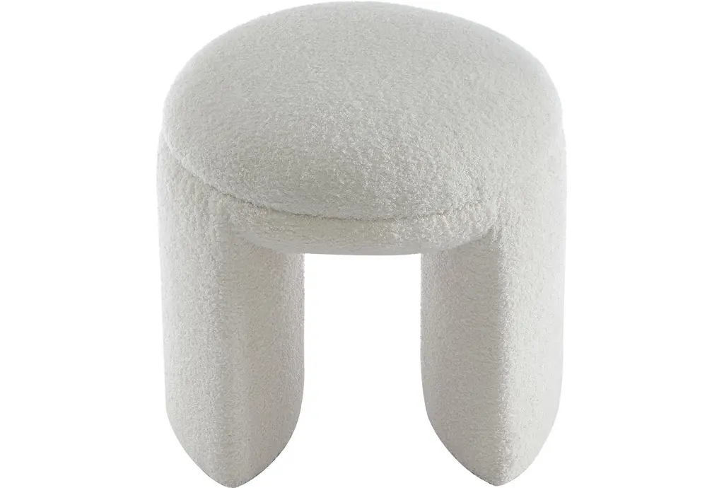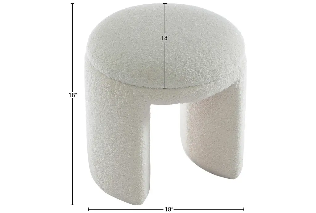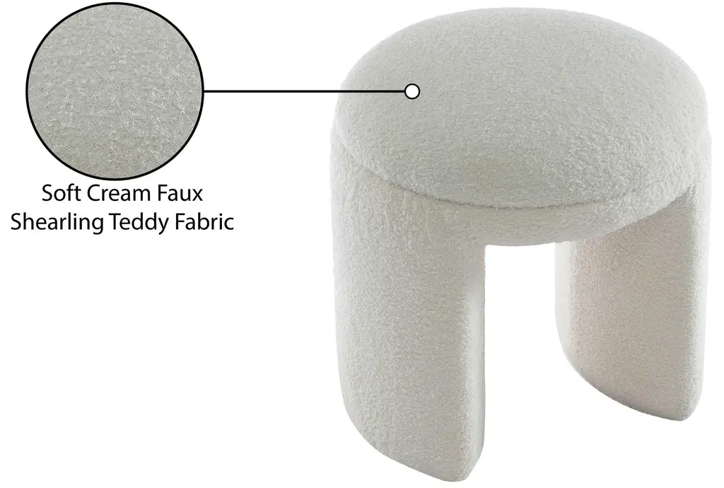 Bowen Cream Faux Shearling Teddy Fabric Round Upholstered Ottoman / Stool