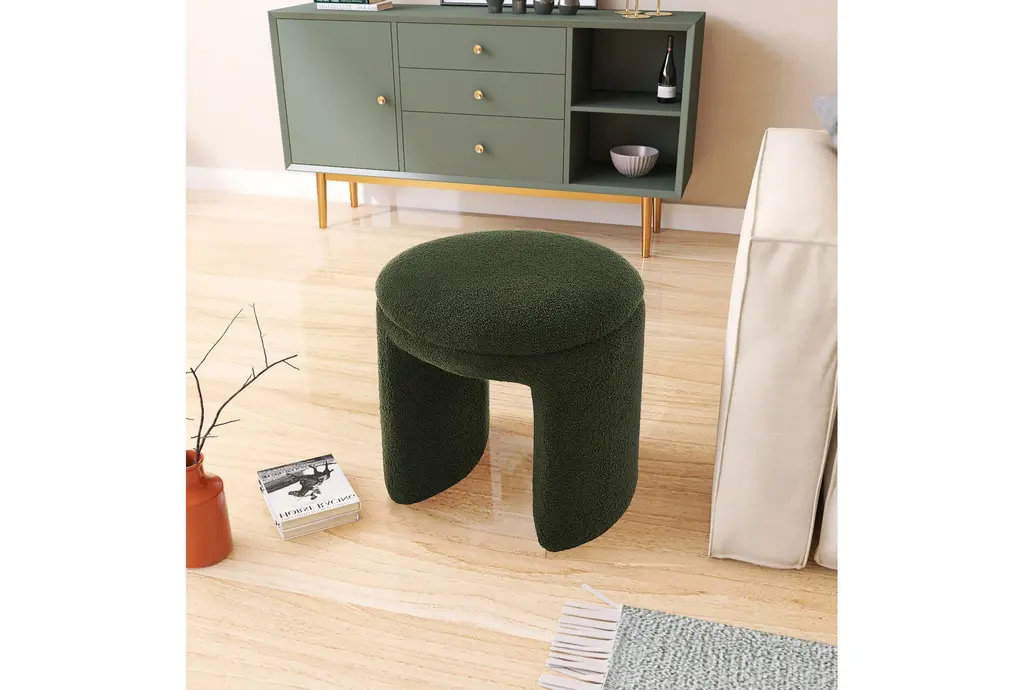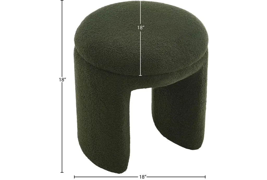 The Bowen Green Faux Shearling Teddy Fabric Round Upholstered Ottoman / Stool is a delightful addition to any living room or bedroom. Its modern design and green fabric bring a touch of contemporary style to your space. This versatile piece can be used as a stool or an ottoman, providing both functionality and comfort.