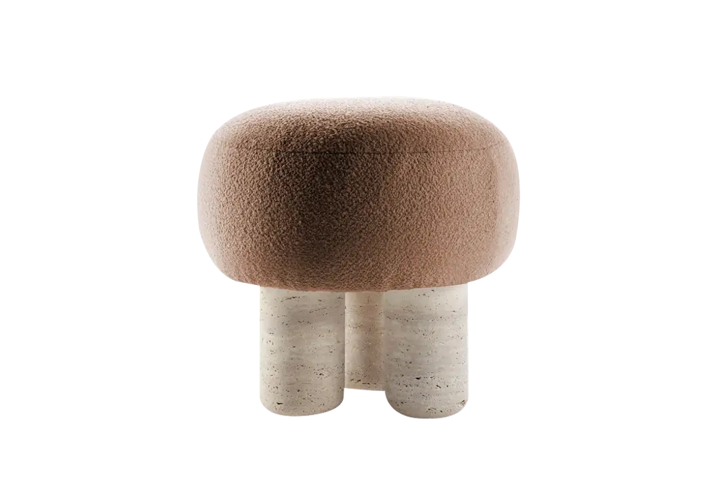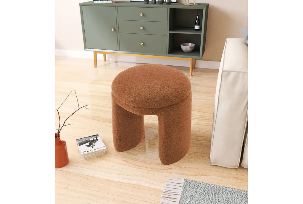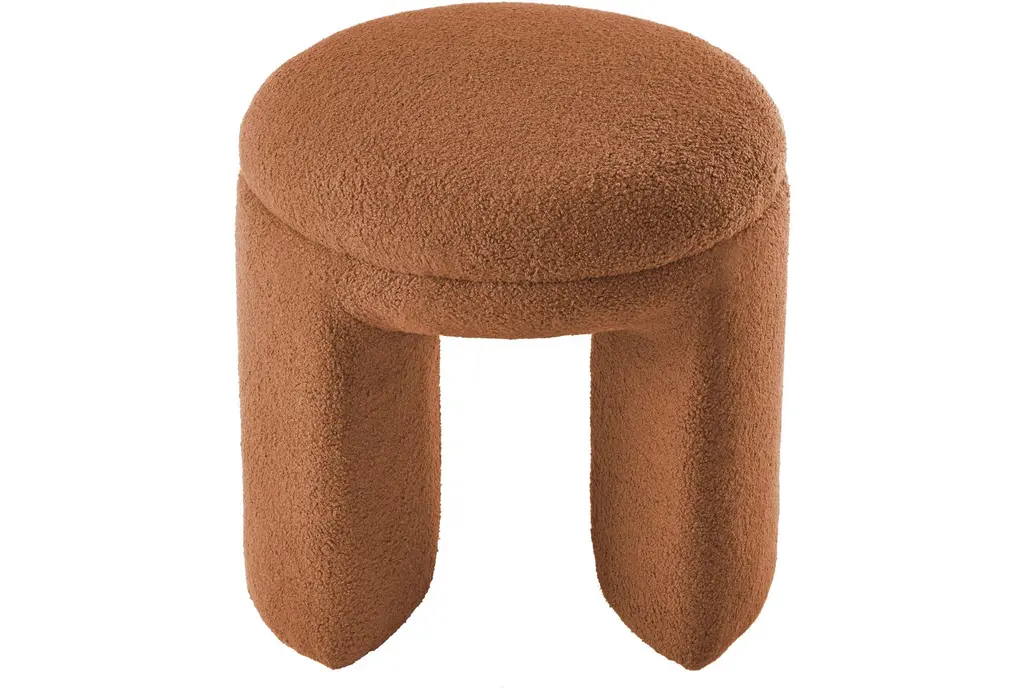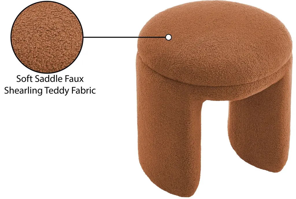 Bowen Saddle Faux Shearling Teddy Fabric Round Upholstered Ottoman / Stool