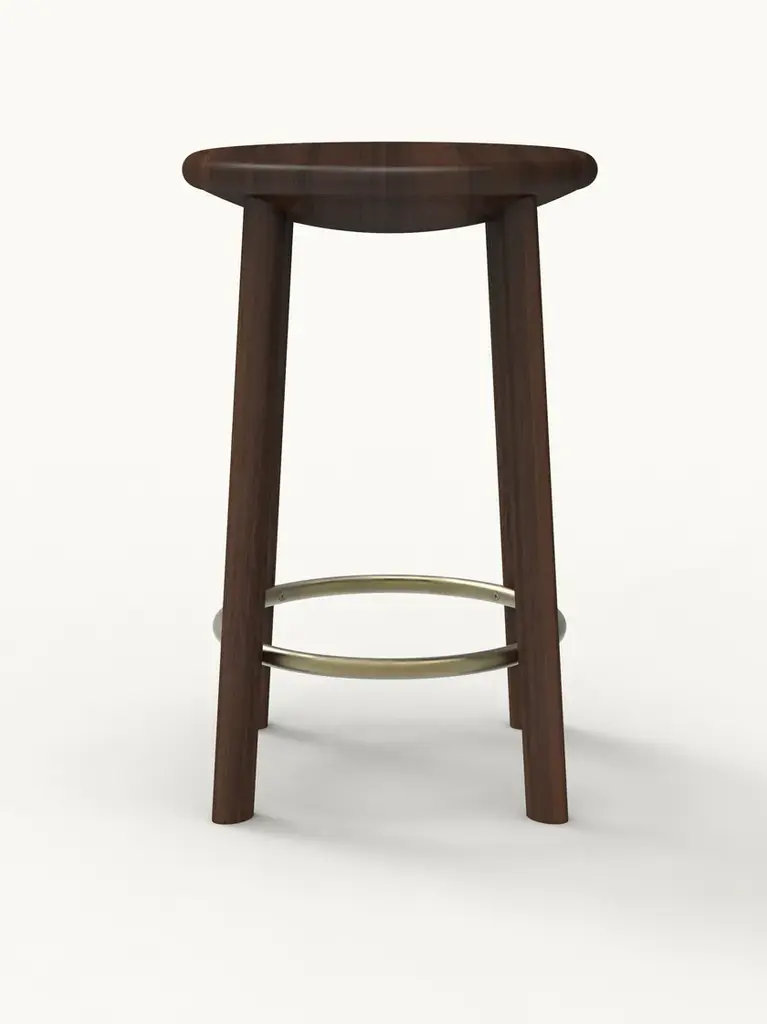 The BassamFellows Bowl Stools get their visual substance and design purity from the shape of a bowl. Bowls are objects to hold in your hands, to caress, and the Bowl Stools, carved out of solid blocks of wood, similarly invite touch. The stools’ legs are pure ovals, an elegant visual contrast to the chunkiness of the seat without distracting from the quiet simplicity of the overall form. While the counter and bar versions of the stool are slightly dished for comfort, the dining height version of the stool is flat, allowing the stool to double as a side table.Wood:Solid White OakSolid WalnutFinish:Ebonized black lacquer on White Oak. Raw effect lacquer on White Oak.Hand rubbed natural oil on Walnut, or hand rubbed black oil on Walnut.