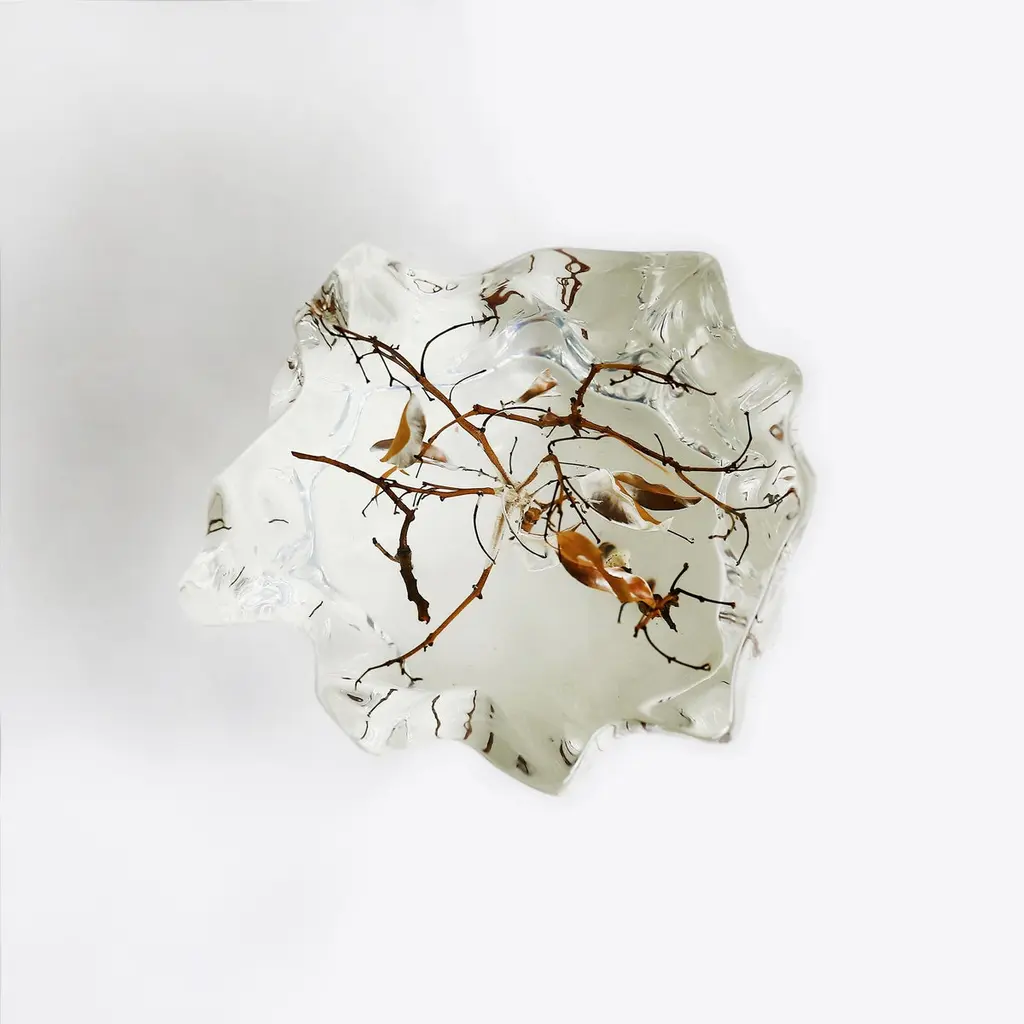 Nature and artists, colliding with the latest high-tech transparent material molding process, colliding with nature and artists, spark a neo-luxism.Each piece of work is unique. Though seemingly unintentional, each decaying wood, each dead branch or even each leaf, is actually carefully selected by the artist as he goes deep into nature. Materials have gone through the baptism of time which left traces of its memory. Adhering to the spirit of the craftsman, the artist creates a series of creative home items through 28 steps of grinding, polishing and other complicated processes, making decaying wood, dead branches and leaves recover their respiration and glow with new life. Time seems to stand still, while life has been sublimated.