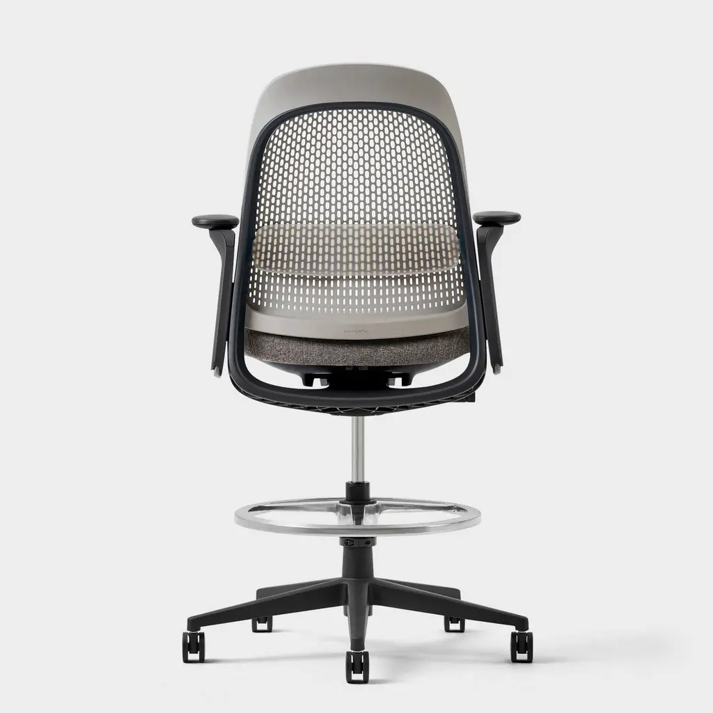 All the ergonomic benefits of our Breck chair, now in a stool that keeps you aligned and comfortable at a standing or drafting desk. Breck brings essential ergonomics with zero compromise. Its three-zoned GeoStretch™ back is flexible yet firm, while intuitive features make comfort effortless. Made from over 50% recycled content and engineered for a minimal carbon footprint, it’s proof that smart design really can do it all. Simply put, Breck is the most ergonomic office stool you’ll find at this price