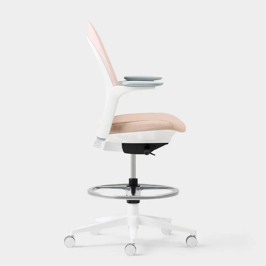 All the ergonomic benefits of our Breck chair, now in a stool that keeps you aligned and comfortable at a standing or drafting desk. Breck brings essential ergonomics with zero compromise. Its three-zoned GeoStretch™ back is flexible yet firm, while intuitive features make comfort effortless. Made from over 50% recycled content and engineered for a minimal carbon footprint, it’s proof that smart design really can do it all. Simply put, Breck is the most ergonomic office stool you’ll find at this price