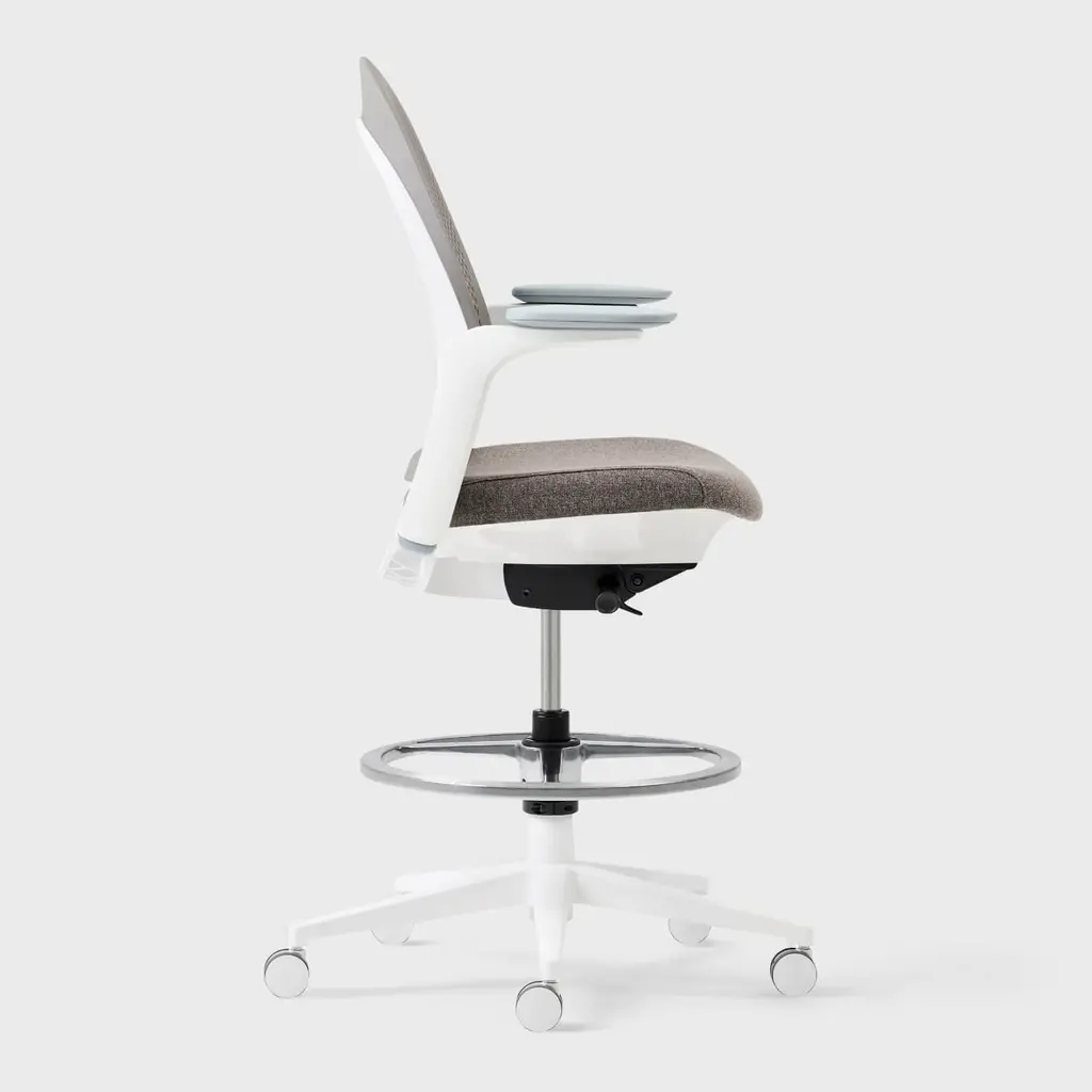 All the ergonomic benefits of our Breck chair, now in a stool that keeps you aligned and comfortable at a standing or drafting desk. Breck brings essential ergonomics with zero compromise. Its three-zoned GeoStretch™ back is flexible yet firm, while intuitive features make comfort effortless. Made from over 50% recycled content and engineered for a minimal carbon footprint, it’s proof that smart design really can do it all. Simply put, Breck is the most ergonomic office stool you’ll find at this price