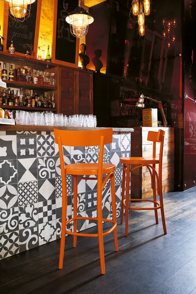 Brera.ss is a stool in lacquered beech wood, available in a wide range of colours.Memory and tradition. As for the chair, the key to the Brera.ss stool is the emblem of a century, the twentieth century and a city, Milan. The feature of uniqueness is, as always, entrusted to the arch placed under the seat.