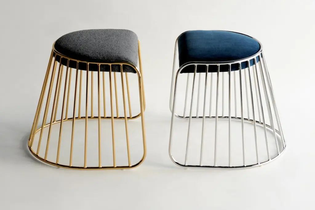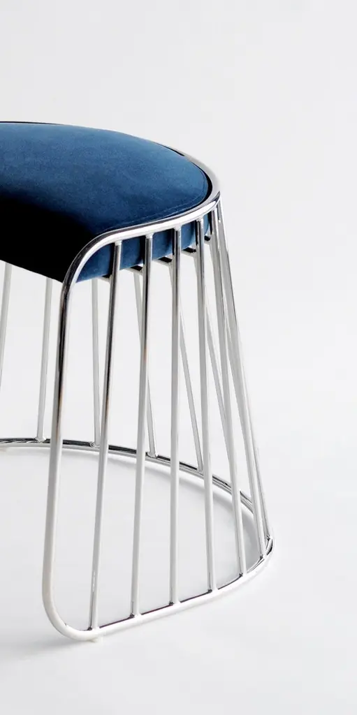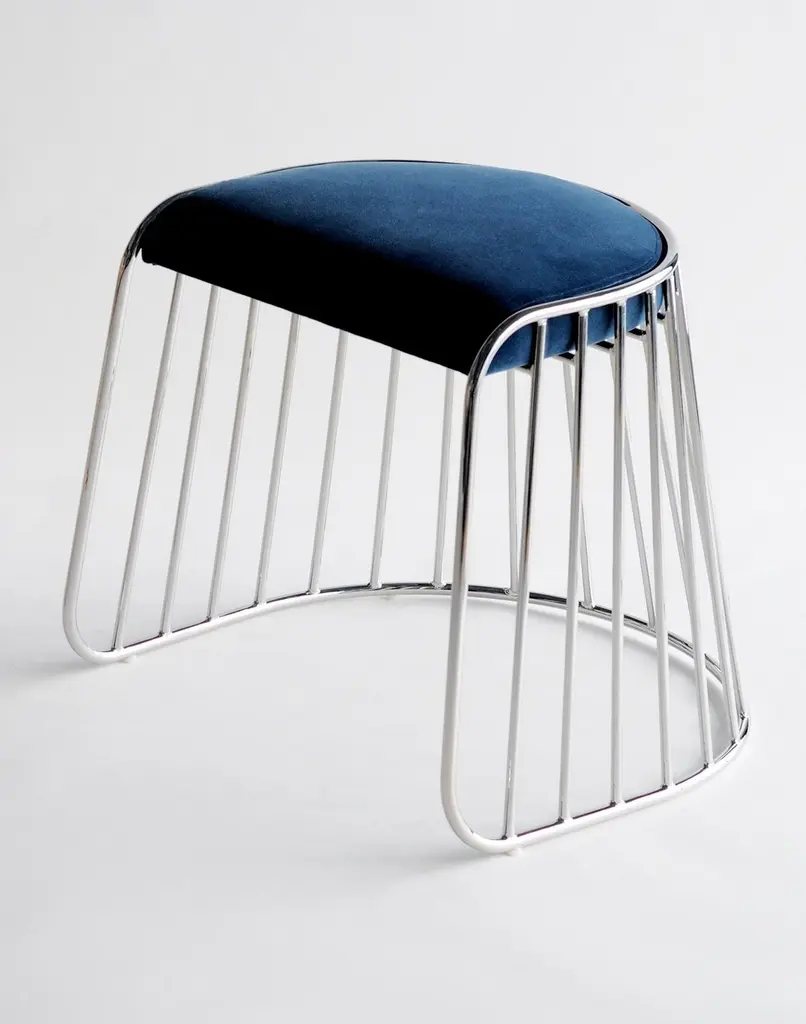 Bride’s Veil Low Stool by Phase DesignDimensions: D 52,1 x W 53,3 x H 45,7 cm.Materials: Upholstery, steel and polished chrome.Fabric price not included.Solid steel bar available in a smoked brass, polished chrome, burnt copper, or powder coat finish with upholstered top. Upholstery may be sourced in Customer Own Material (COM), Customer Own Leather (COL), or in Phase Design's suggested fabrics and leathers. Prices may vary. Please contact us.The Bride's Veil Stool family’s unique language is meant as a graceful alternative to the archetypal stool. The strikingly elegant metal base is available in smoked brass, polished chrome, burnt copper, or powder coat, while the top is offered in COM upholstery. At every angle these stools offer a visual treat.Autodidact award-winning designer Reza Feiz has always been drawn to the strength in simplicity. Lured to Southern California by its inventive, creative spirit, he quickly discovered his true calling among the vast community of creators and artisans whose skills and ingenuity expertly transform imagination into reality.Inspired by Los Angeles’ iconic landscape and the compelling beauty of the places and spaces he encountered, he envisioned furniture, lighting and tabletop accessories, fabricating them from contemporary materials with the help of a tightly knit coterie of craftspeople.The resulting restrained yet revolutionary pieces have garnered enthusiasm from an international audience.He’s been lauded as “An American designer who influences world design”, a “Style Pioneer” and “One of a group of select young designers who represent the leading edge of discovery in design.” Architectural Digest’s Mayer Rus noted that his “wide-ranging collections make a strong case for the enduring appeal of restrained modern design.” Surface Magazine raved that he “imbues his work with a 21st-century edge. His astute sense of restraint keeps the designs relevant in a constantly evolving industry, without needing to subscribe to trends.”“Reza Feiz imbues his work with a 21st-century edge. His astute sense of restraint keeps the designs relevant in a constantly evolving industry, without needing to subscribe to trends.”