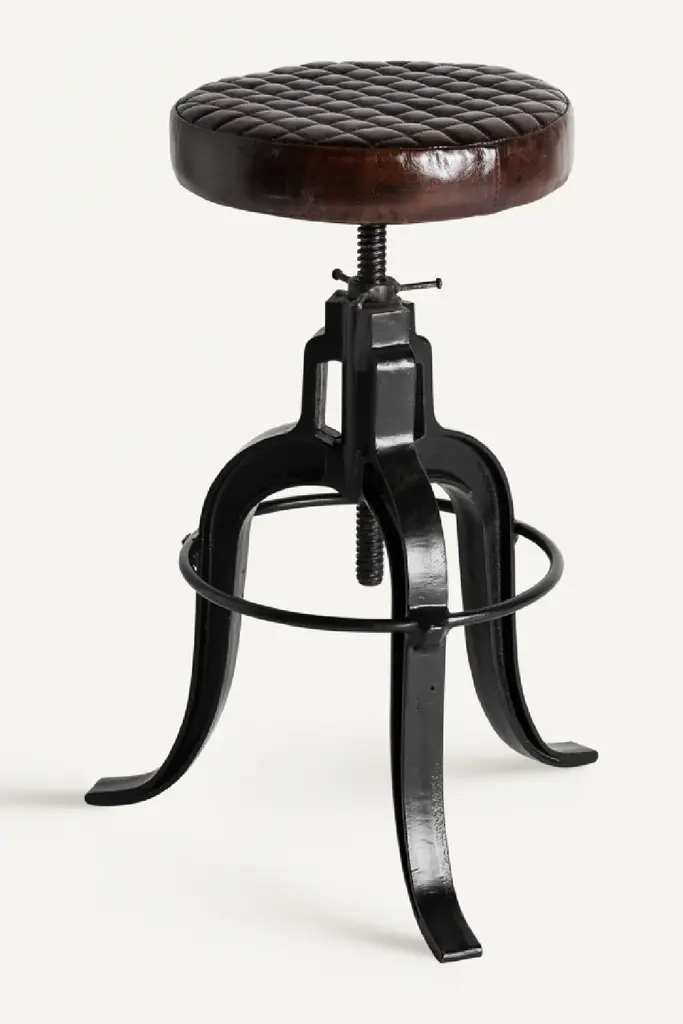 Introducing the Brown Leather Vintage Stool from Vical Home Ripley. This stool features a luxurious brown leather finish, adding a touch of sophistication to any room. Its vintage design and premium materials make it a timeless piece that will elevate your home decor. Upgrade your space with this exclusive piece.