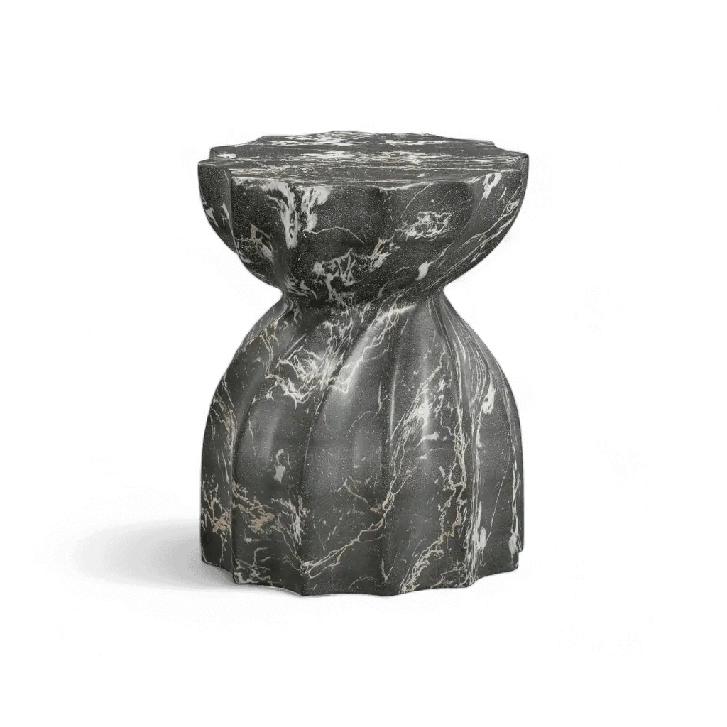 The Brume Stool features a faux marble look with concrete durability, suitable for both indoor and outdoor use. Its bold black finish adds an industrial-chic element to your space.Concrete | Crafted with durable concrete and featuring a stunning black marble finish | Perfect for indoor or outdoor use | Outdoor-safe; cover or store indoors during inclement weather or when not in use