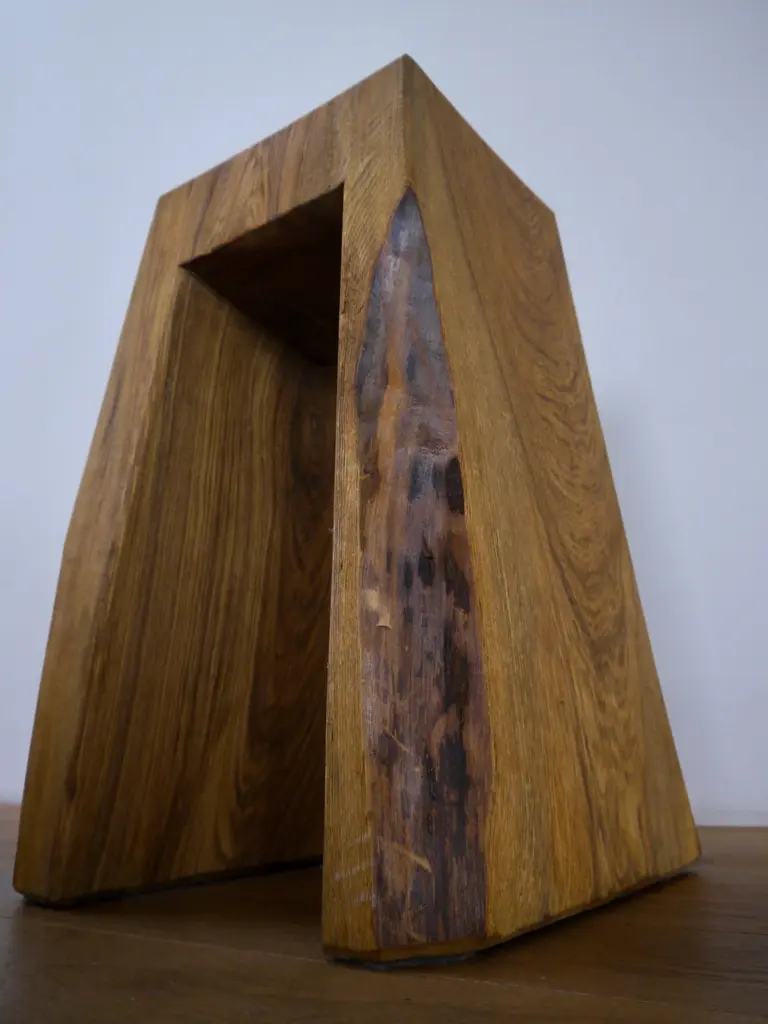 Brushed and Limed Ash Stool by Fritz BaumannDimensions: Top 28 x 27 x h 62 cmMaterials: Ash This piece is suitable for outdoor use. Please note that the patina may change and the white grain may diminish with time when exposed to rain.Handmade from solid pieces of wood, free-cut following the natural grain, made one by one, the stools of Fritz Baumann are the kind of objects that remind us of the sheer beauty that exists in nature.From forest to studio, Fritz Baumann creates these sculpture-like seats in stages, working first from large green pieces of wood, processed on the spot with a chainsaw, then cut and chiseled into simple bridged forms, then comes the drying process; a long phase in which the wood loses its tension, possibly tears, settles into its new form. Finally, comes the more delicate work – the careful planning and sanding of the seat until it is ‘smooth as glass’ and the filling in of drying cracks with a pen. Wherever the wood has split is joined in but made visible to honour the ‘blemish’, reminiscent of the Japanese aesthetic wabi, which sees beauty in imperfection.And it is no doubt this entire process, labor-intensive and full of passion, that makes these stools so appealing in their final form. Through each phase, both human and nature play an equal part, and as a result no stool is quite like any other. While they all possess a real sense of strength and durability, a combination of smoothness and texture, the human touch, there are never-ending variations – in color and form, size and finish, and each one looks as though it has its own story. Which, in fact, it does.